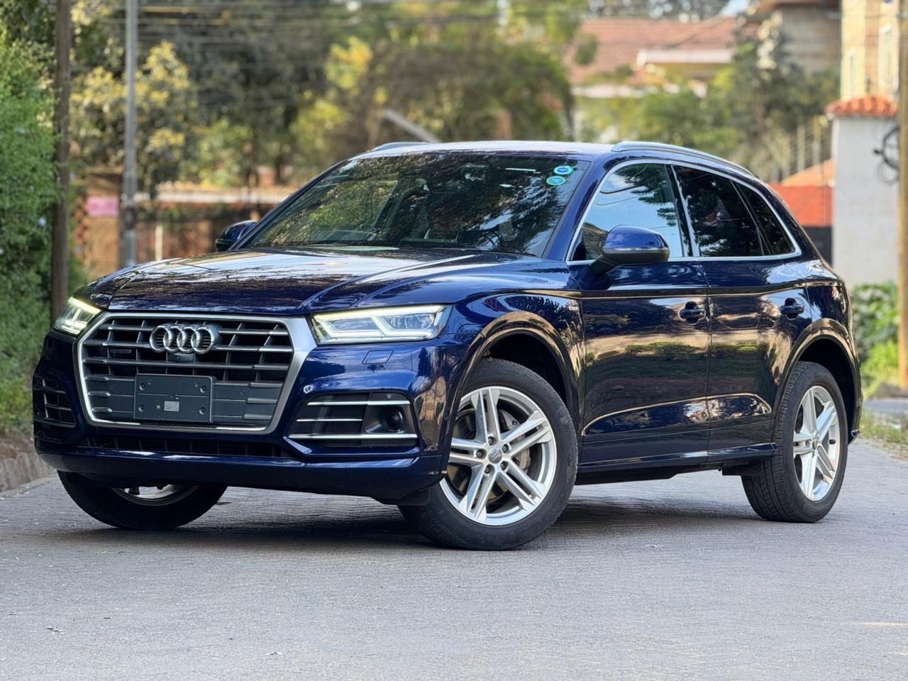 This Q5 is a masterpiece of design, effortlessly pulling you closer to admire and gaze. Its athletic yet elegant silhouette is immediately striking. The radiant Navarra Blue Metallic paintwork shimmers with an intoxicating depth, transitioning from a sophisticated dark hue in the shade to a brilliant, almost jewel-like sparkle under the sun. This captivating color isn't just paint; it's a statement, reflecting the premium craftsmanship of the vehicle.