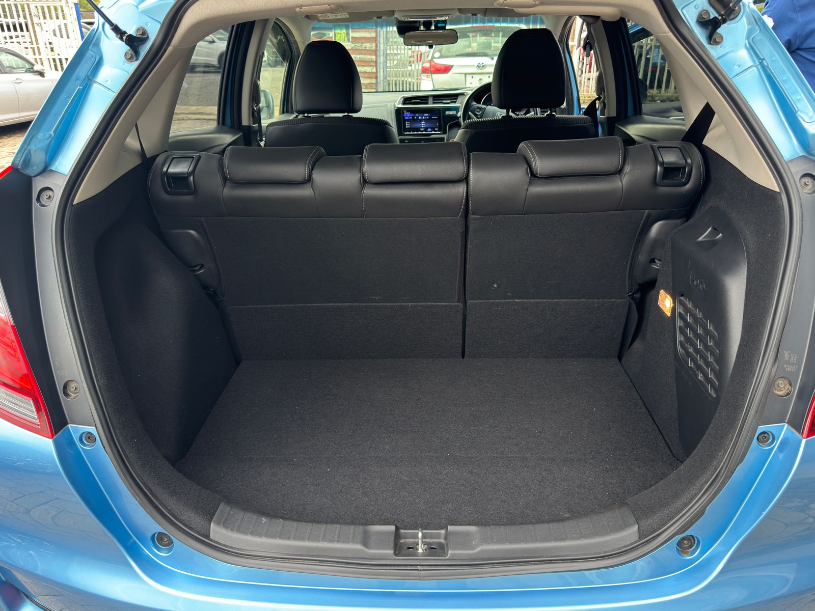 Step inside and you are welcomed by a premium half-leather interior that blends durability with a touch of luxury. The seats are designed to provide comfort for both short commutes and long journeys, while the spacious cabin layout offers excellent legroom and headroom for passengers. Honda’s smart interior design maximizes space, giving the Fit an impressively roomy feel despite its compact size.