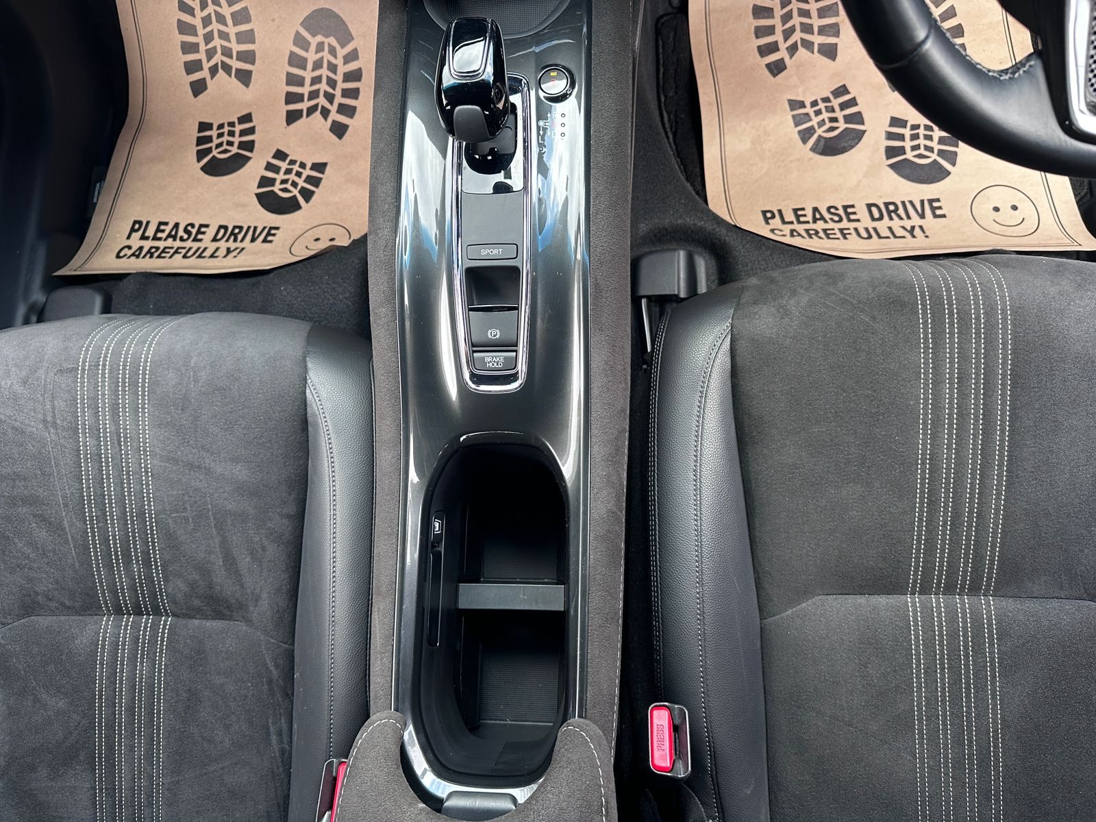 Step inside, and the cabin immediately feels tuned for the driver. The raised center console wraps slightly toward you, creating a cockpit-like space where controls fall naturally to hand. The compact electronic shifter, flanked by the Sport mode button and electronic parking brake, keeps the layout clean but purposeful, while paddle shifters on the steering wheel add a touch of performance feel. The seats are sculpted to hold you in place, finished in a mix of leather bolsters and suede-like inserts with contrast stitching, delivering both grip and visual flair. Even the seating position feels more planted than in many crossovers, giving you a stronger connection to the road. Around you, metallic accents and Honda’s tight detailing complete the sporty yet refined atmosphere.