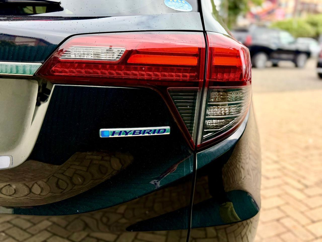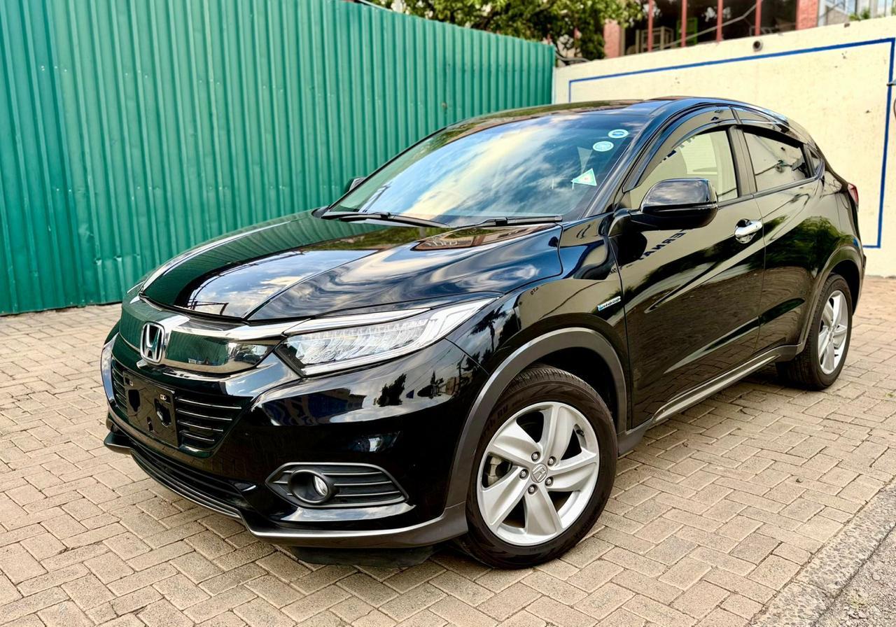The 2018 Honda Vezel Hybrid strikes a strong balance between modern styling and intelligent efficiency. Finished in a gloss black exterior, it carries a bold, polished presence that feels sleek and intentional. The deep finish enhances its sculpted body lines, while the silver alloy wheels provide a crisp contrast, giving the vehicle a refined yet sporty stance.