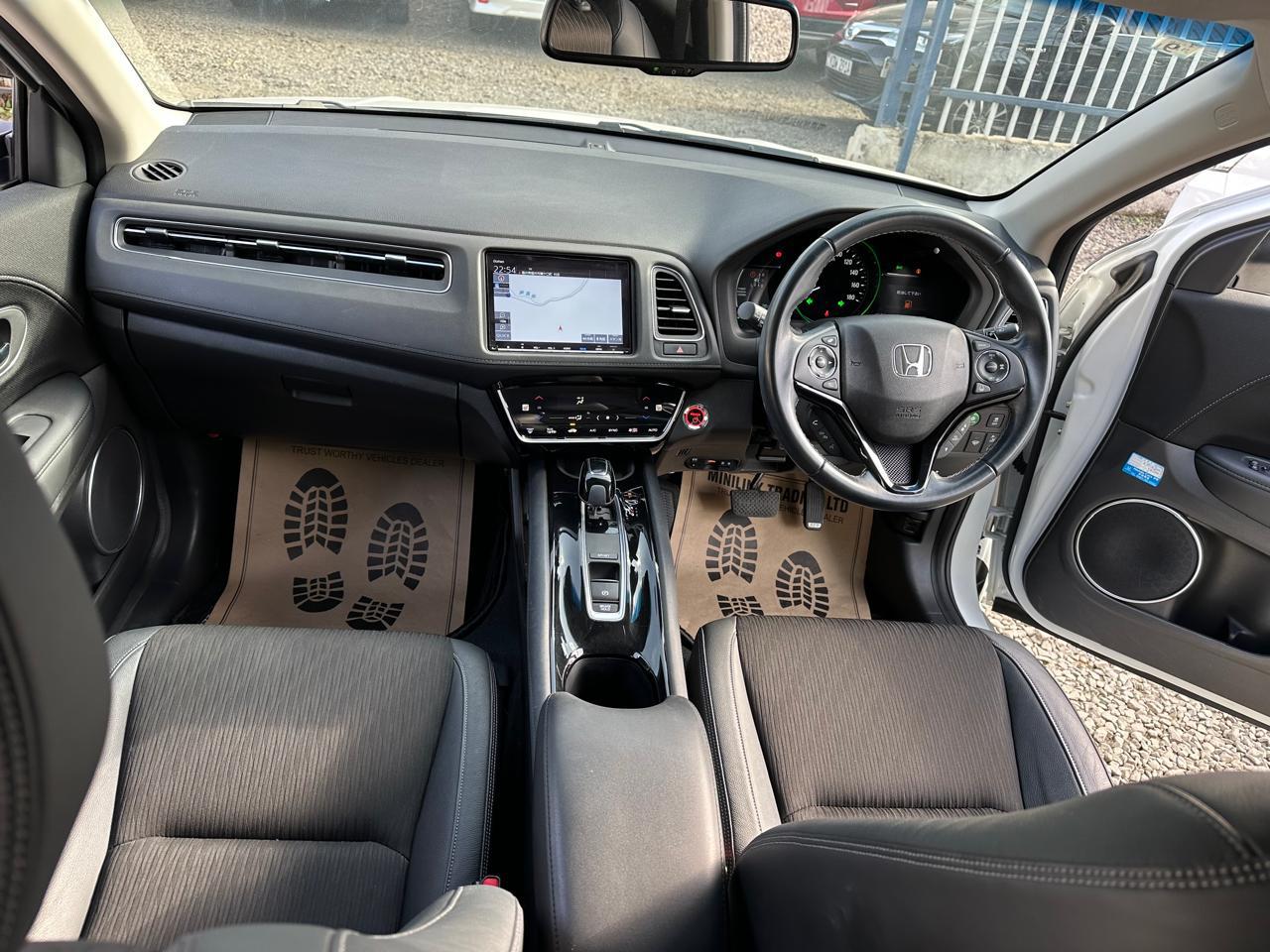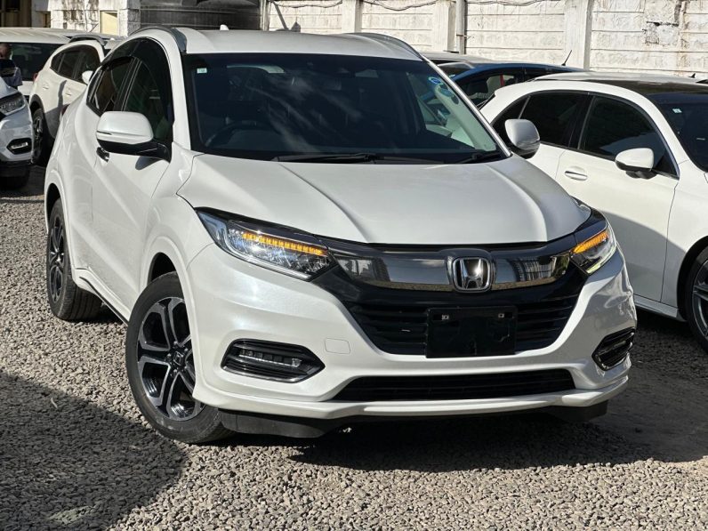 The 2020 Honda Vezel arrives with a quiet sophistication that defines modern compact SUVs. Finished in a clean pearl white exterior, it carries a crisp, polished presence that highlights its sharp body creases and coupe-inspired silhouette. The Z grade elevates the overall appeal, giving it a more refined stance complemented by polished alloy wheels that add just the right amount of shine against the white finish.