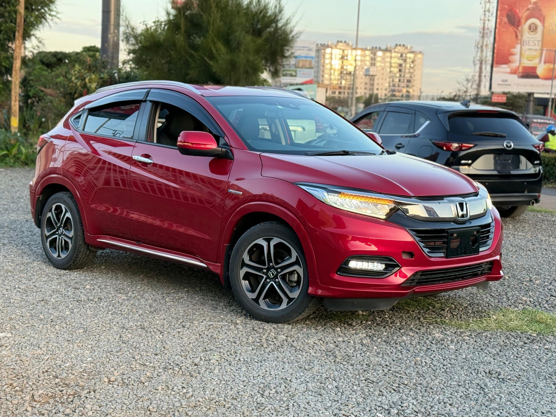 The 2018 Honda Vezel Z in red wine presents a striking presence on the road, effortlessly combining elegance with a sporty character that catches the eye from every angle. Its exterior lines are smooth and dynamic, giving it a modern and confident look, while the subtle touches of the Z trim hint at the premium experience that awaits inside.