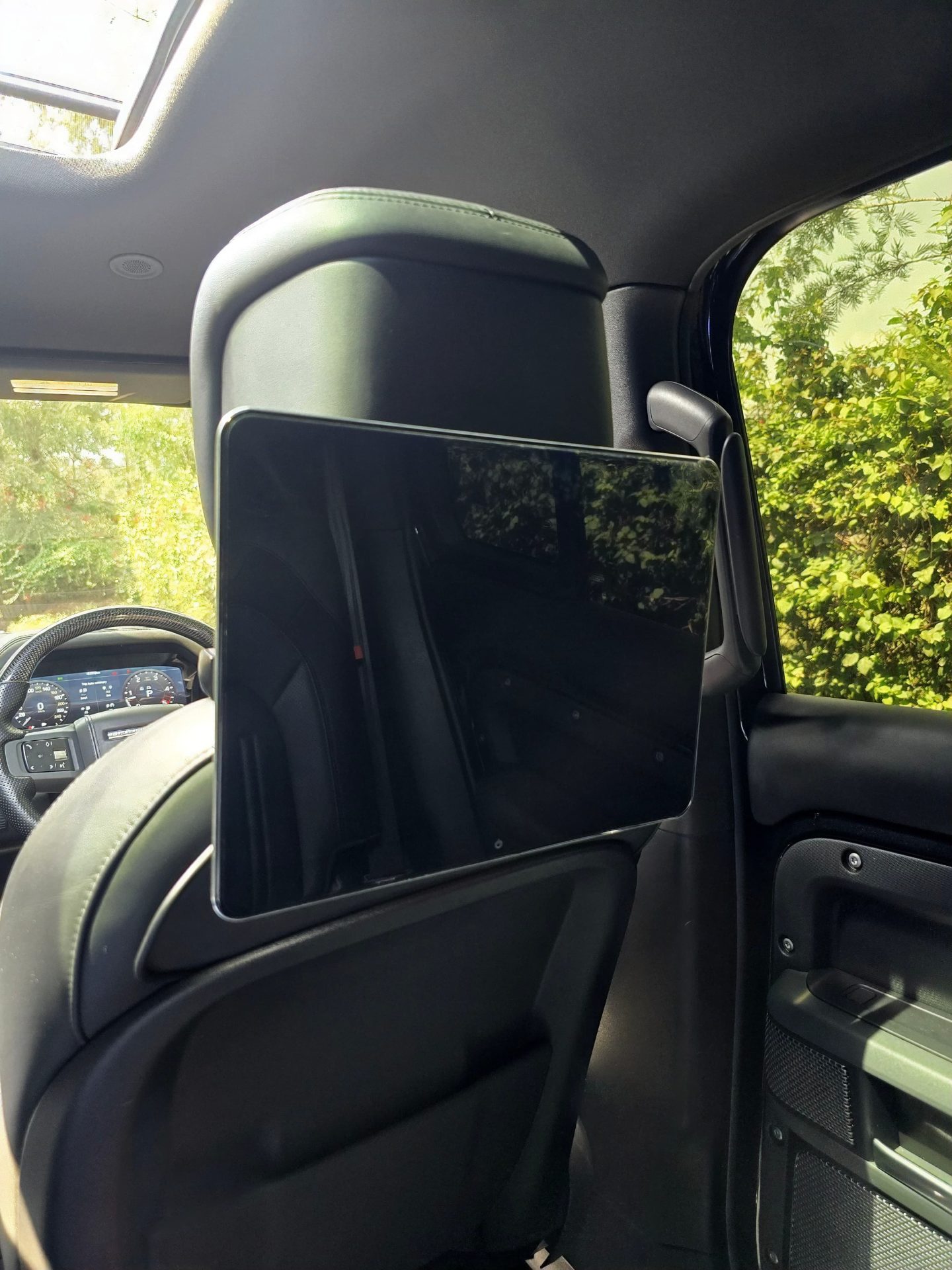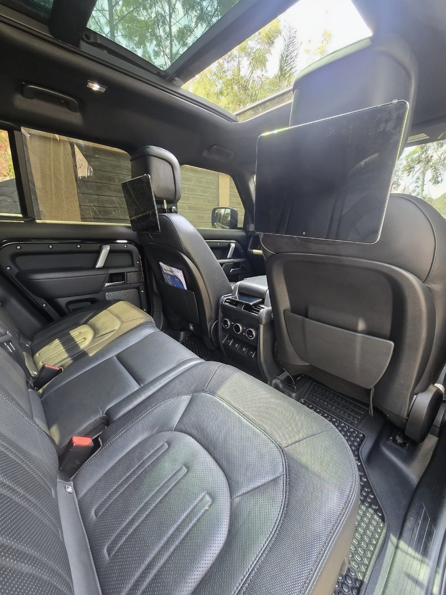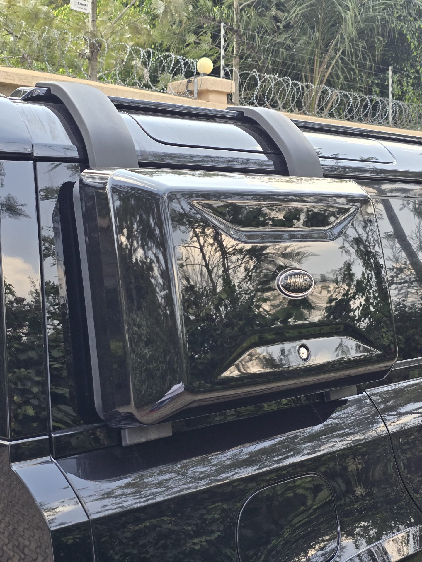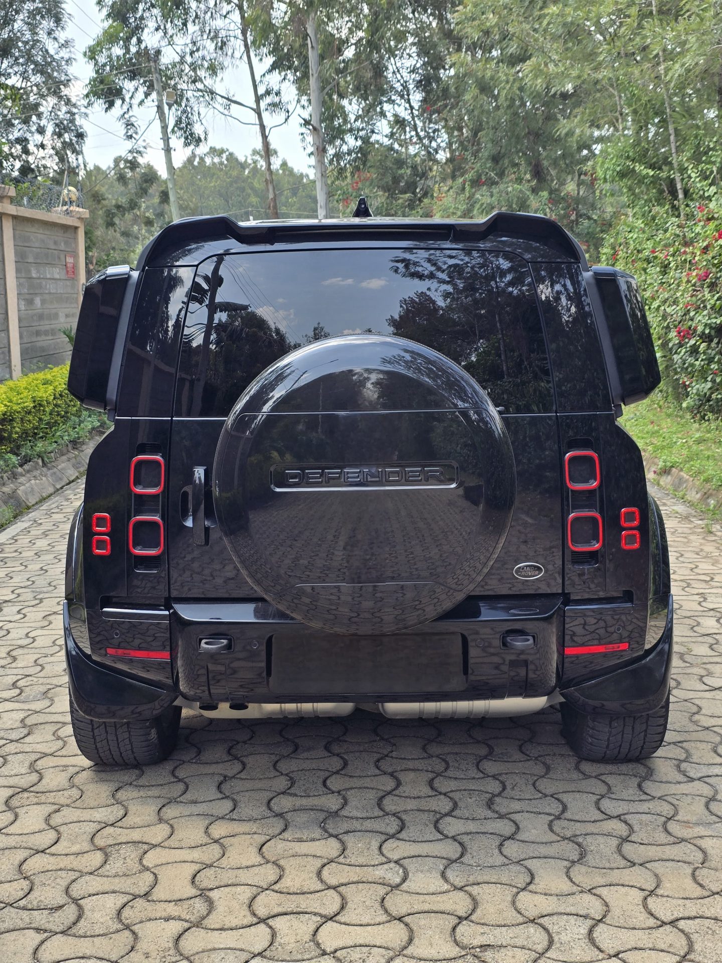 - Finished in Santorini Black, this 2022 Defender 110 P400 X-Dynamic carries serious road presence. It’s bold, upright, and instantly recognizable—modern but still true to the Defender DNA. The blacked-out detailing on the X-Dynamic package gives it that aggressive, premium edge that stands out whether it’s parked or in motion.