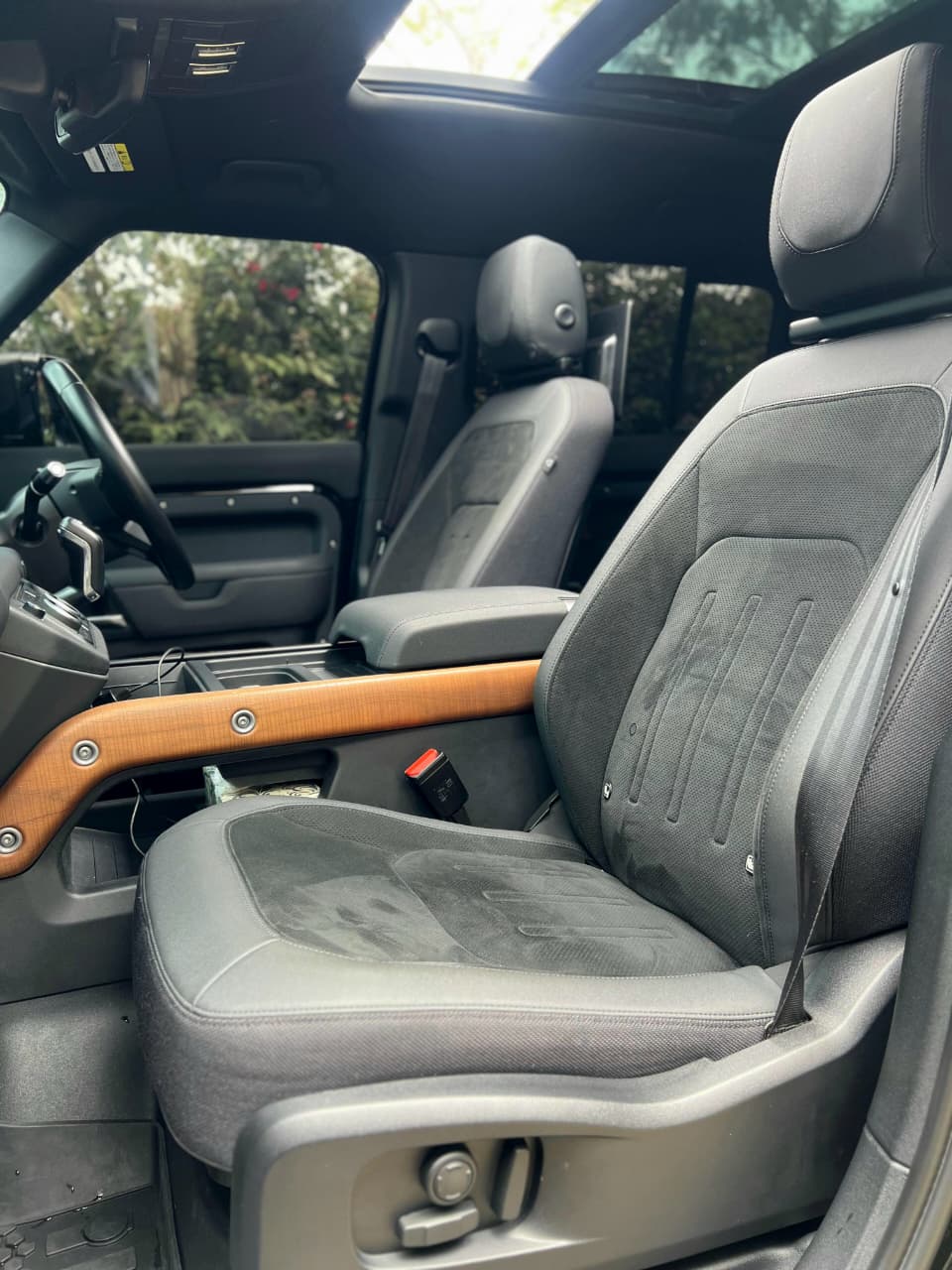 Inside, the Defender keeps things solid and premium. The cabin is clean, practical, and built to last, with leather finishes, a high driving position, and excellent all round visibility. The 110 body gives you real space, comfortable seating for passengers and enough room to carry everything you need without compromise.