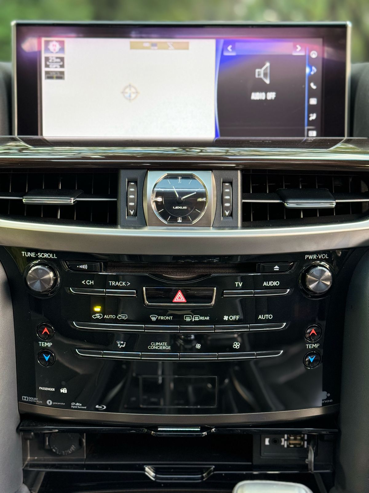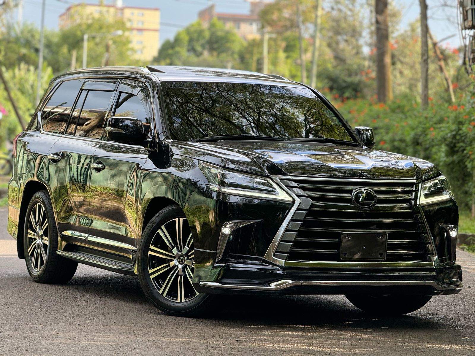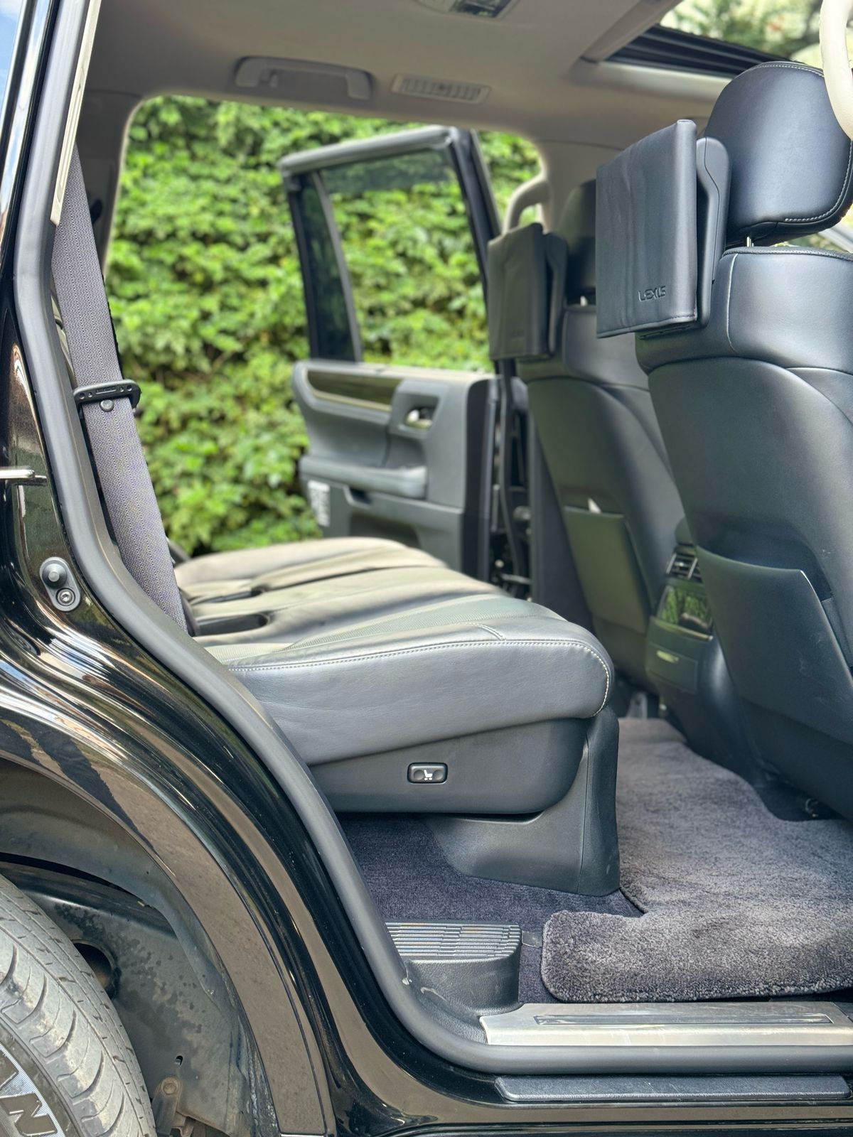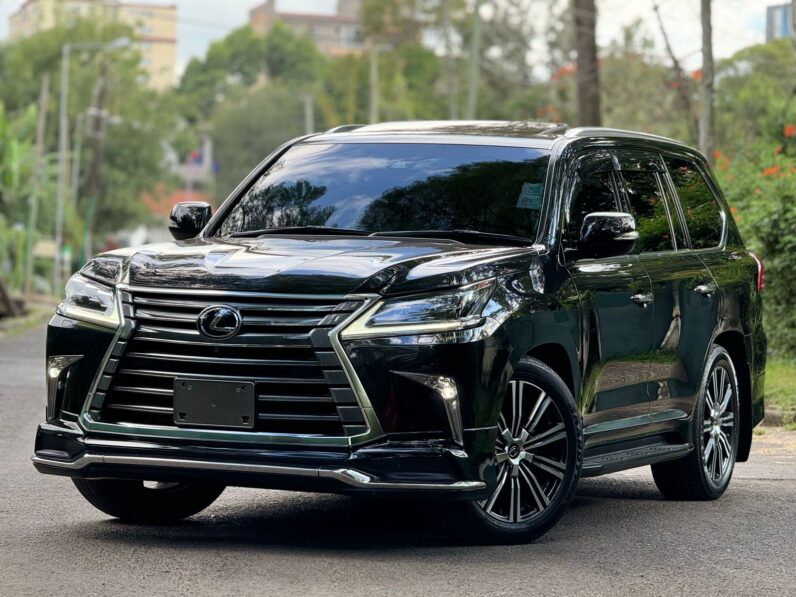 The 2018 Lexus LX570 in pure black with a matching black interior is a full-sized luxury SUV that commands instant presence and authority. Beneath its bold spindle grille and sculpted body lines sits a powerful 5.7-liter V8 engine delivering 383 horsepower and 546 Nm of torque, paired to an 8-speed automatic transmission and a full-time 4WD system—built to conquer rough terrain just as effortlessly as it glides through city streets. Inside, the all-black interior wraps you in premium leather, dark wood trim, and metallic accents, creating a cabin that oozes sophistication and brute confidence. It seats seven passengers comfortably, with second-row captain seats and a split-folding third row that adds versatility to its luxury. A 12.3-inch infotainment screen dominates the dash, supported by a Mark Levinson premium audio system, multi-zone climate control, cooled and heated seats, and a suite of driver-assist features including Crawl Control, Multi-Terrain Select, and adaptive cruise control. Whether parked at a high-end hotel or hammering through muddy trails, this black-on-black 2018 LX570 doesn’t whisper luxury—it shouts it unapologetically.