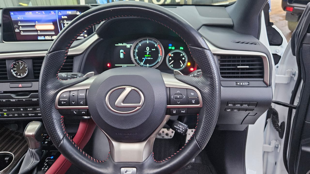 This 2018 Lexus RX F Sport is the perfect blend of aggressive styling and premium luxury. Dressed in a crisp white exterior, it commands attention with its bold spindle grille, sharp LED headlights, and sporty body lines. Step inside, and you're greeted by a stunning red leather interior that exudes elegance and performance flair.