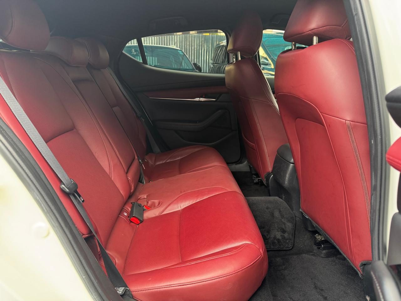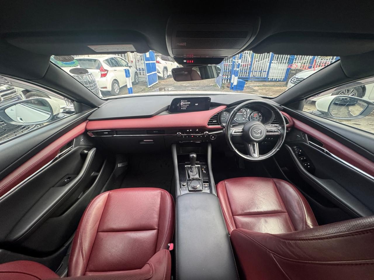 Step inside the 2020 Mazda 3 and it immediately defines what refinement feels like within its class. The cabin is crafted around the driver, and every surface seems to exist with purpose. The burgundy leather finish sets the tone — soft to the touch, rich in texture, and perfectly stitched across the seats and dashboard. It brings a sense of warmth that contrasts beautifully with the cool black trims and metallic accents surrounding the cockpit. The front seats are sculpted for comfort and support, offering heating for colder mornings, while the steering wheel, also heated, feels solid and precise in hand, giving the driver that confident grip that connects directly to the road.