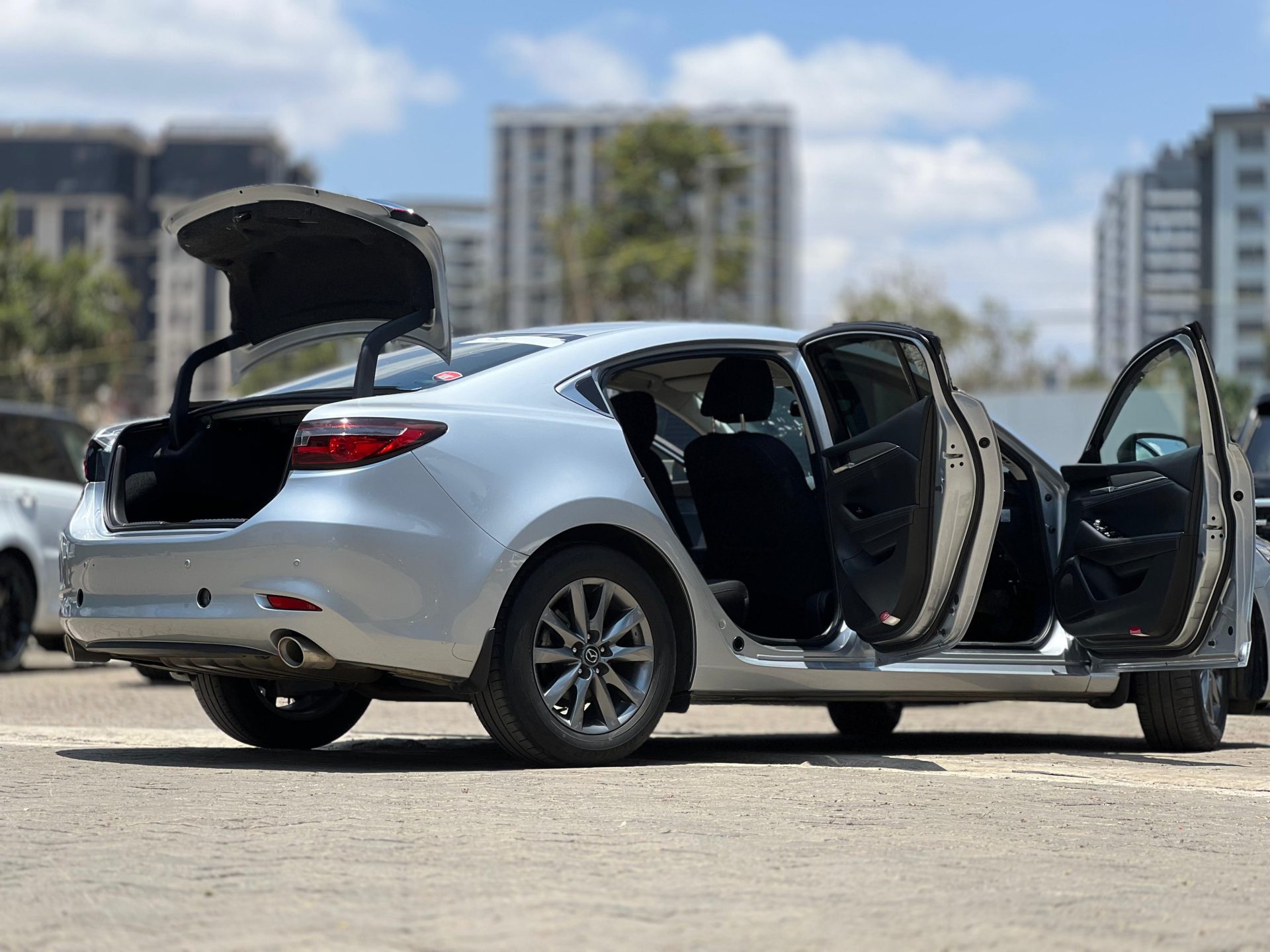 From the outside, the Mazda 6 continues this theme of composed refinement. The silvery metallic paint catches the sunlight with a liquid glow, while the sculpted bonnet and bold front grille hint at restrained athleticism. Sleek alloy wheels and the precise lines along the flanks emphasize the car’s poised stance, echoing the interior’s balance of serenity and strength. This 2020 Mazda 6,  is a sedan that pairs quiet, functional luxury with the confidence of sharp, modern design.