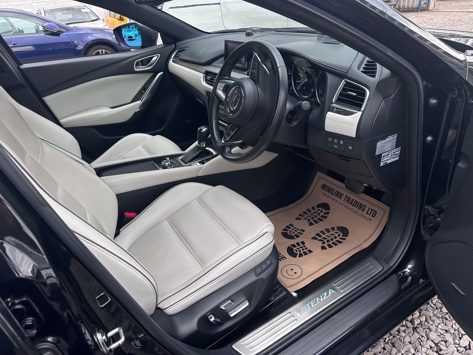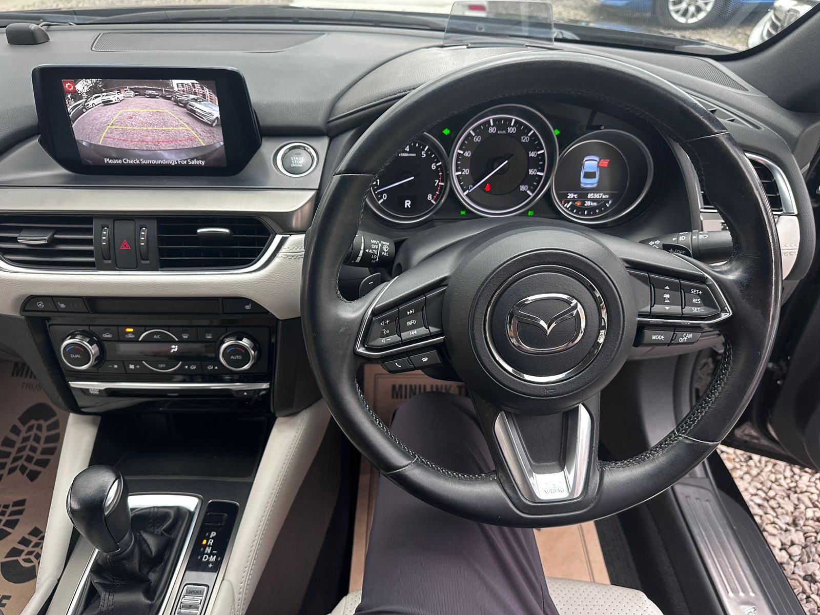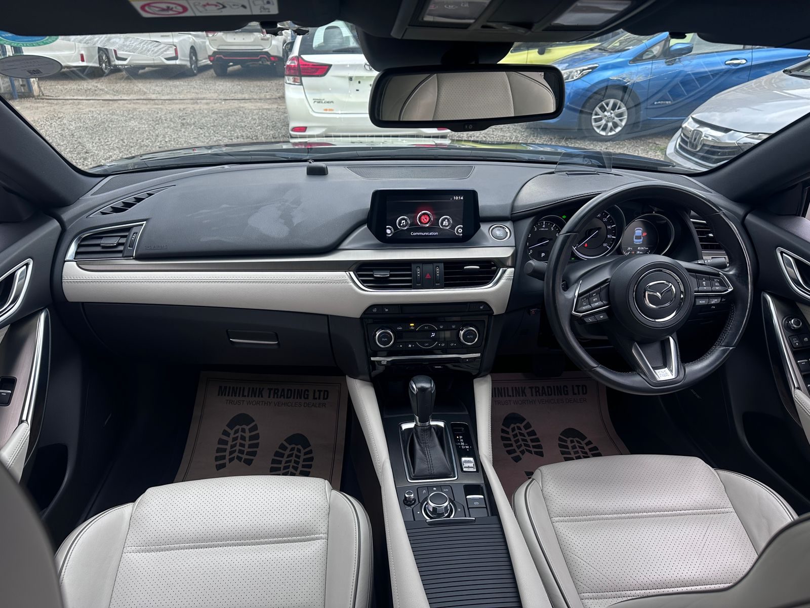 Step inside, and the story takes on a whole new level of refinement. The beige interior is not just a color—it’s an atmosphere. Warm, classy, and upscale, it transforms the cabin into a space of calm and comfort. The seats, wide and supportive, invite you to sink in and relax, while the thoughtful layout of the dashboard and center console reflects Mazda’s obsession with driver-focused design. Subtle accents and fine textures give the car a premium feel, rivaling luxury brands without the inflated badge price. Whether you’re seated in the front enjoying the cockpit-style design, or in the back where space and comfort shine, the Atenza ensures everyone on board feels at ease.