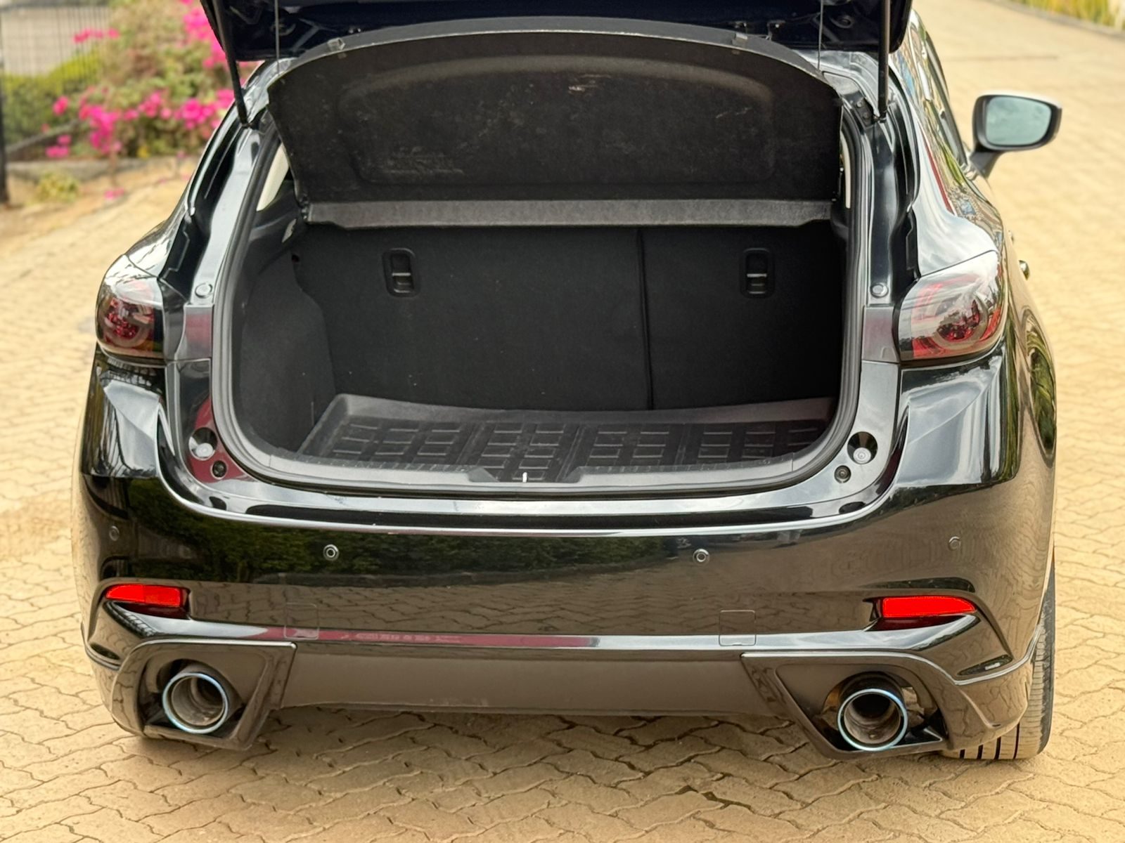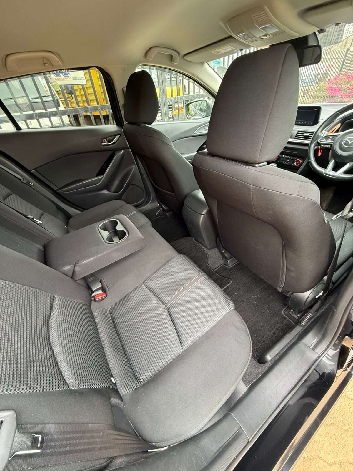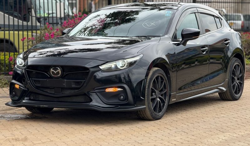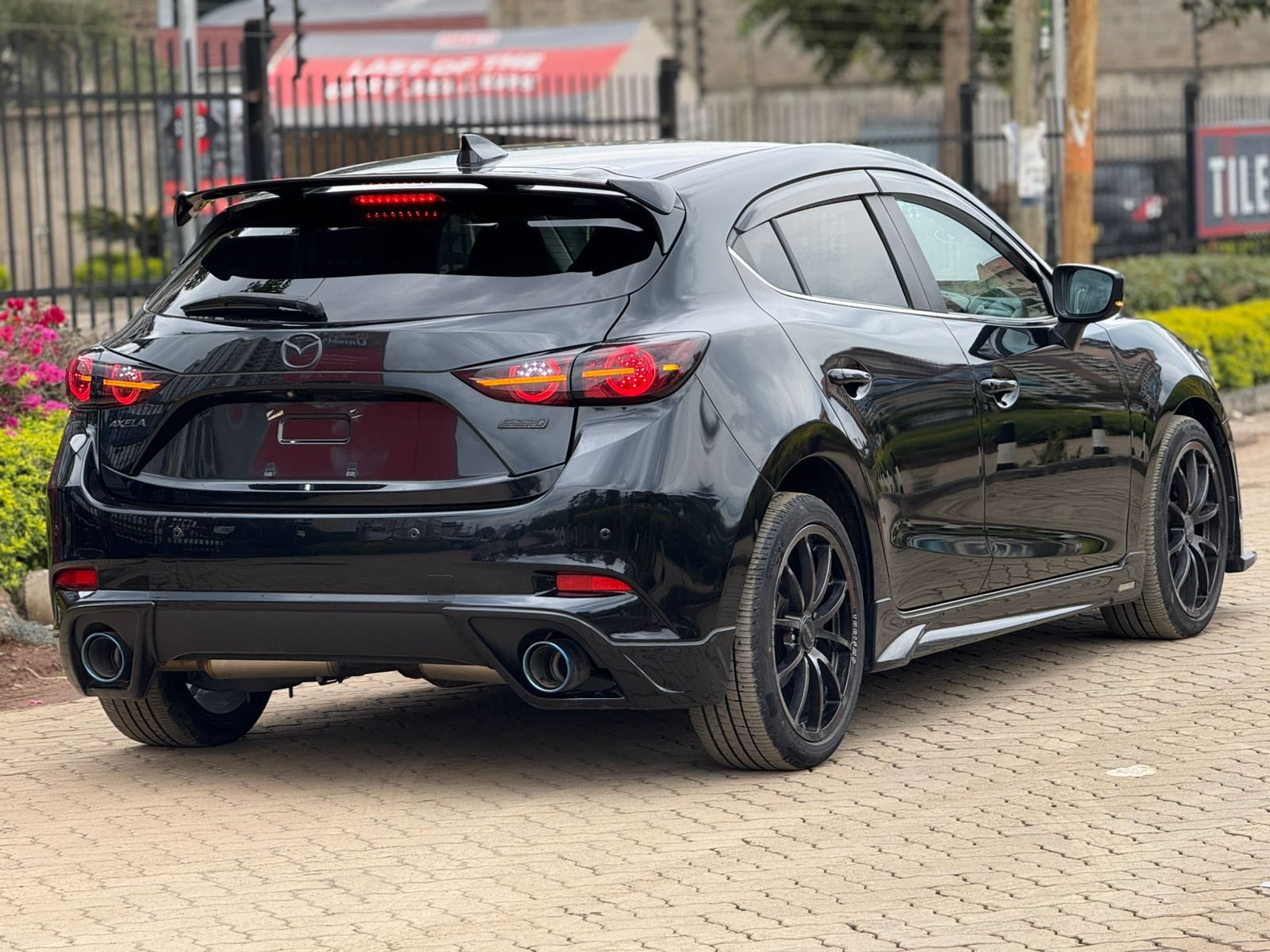 his isn’t just another black hatchback—it’s a machine with attitude. The 2018 Mazda Axela, dressed in midnight black with a sharp body kit, sits low and wide like it was carved for motion. The 18-inch alloys aren’t there for show; they fill the arches perfectly, giving the car a planted stance. Add the smoked lights and subtle rear spoiler, and suddenly this Axela doesn’t just blend into traffic—it dominates it without a word.
