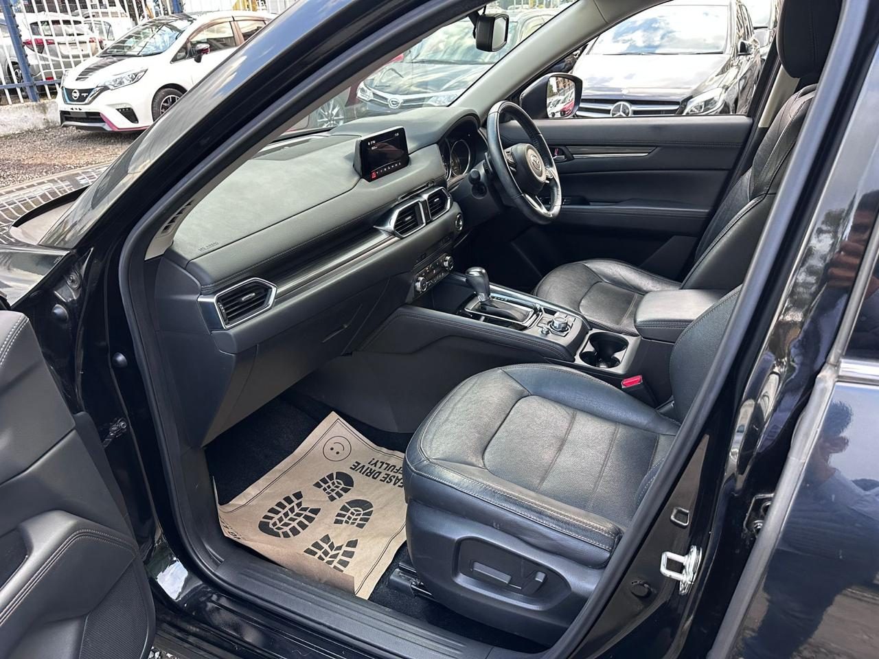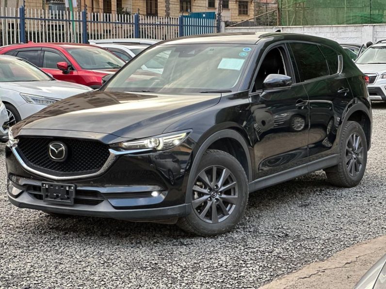 The 2017 Mazda CX-5 speaks in confidence — not loud, but certain of its place. Dressed in a metallic black coat that glimmers under light, it carries that deep, refined attitude Mazda is known for. The metallic black alloy wheels complement its stance perfectly, while the twin exhausts at the rear add that hint of sport to its calm composure. Every curve and line feels measured, sculpted to balance strength and grace.