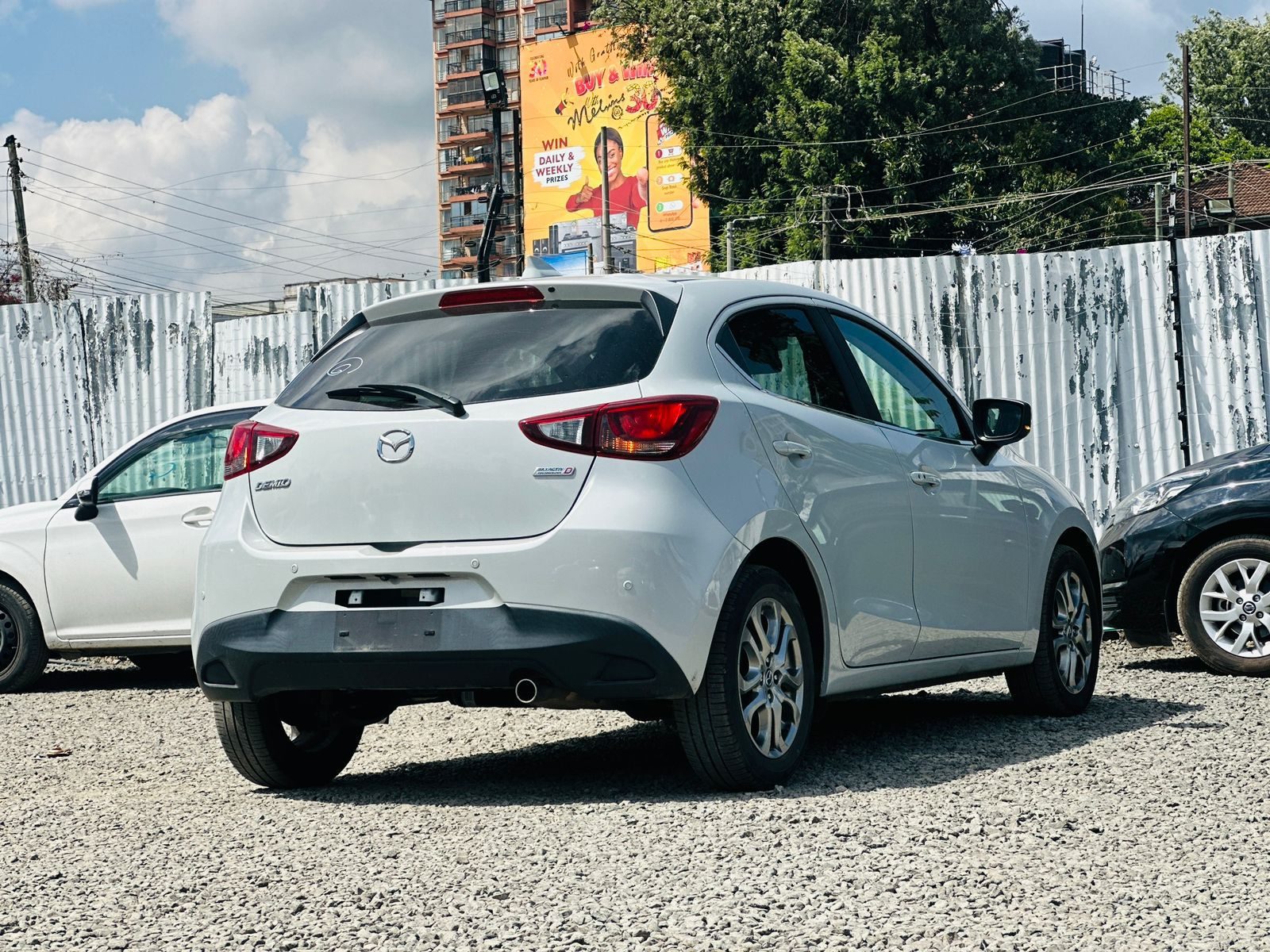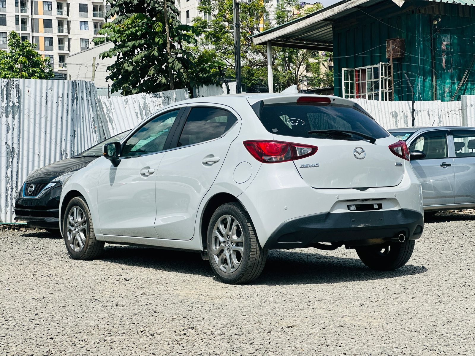 The 2018 Mazda Demio in snowflake white pearl mica carries a clean and polished look that suits its compact size without losing presence. The colour gives it a crisp finish under sunlight and a smooth glow at night, making the car feel more refined than its class usually suggests. Step inside and the cabin immediately surprises you with its burgundy seats, a touch of richness that lifts the entire interior atmosphere. The seats are not only stylish but heated, giving extra comfort on cold mornings and making everyday driving feel more cared for. The cabin layout follows Mazda’s familiar simplicity, where controls are neatly placed, visibility is open, and everything feels like it serves the driver without clutter or distraction.