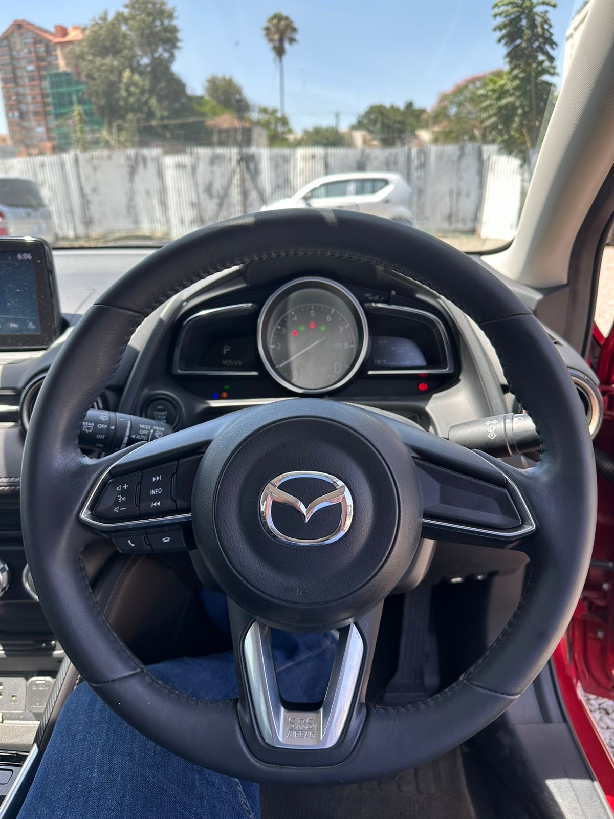 The exterior design is modern and refined, showcasing Mazda’s signature styling with clean lines and a confident stance. Its compact proportions make it easy to maneuver and park, yet its bold presence ensures it never goes unnoticed. Step inside, and you are welcomed into a well-crafted interior finished with black leather seats, offering a premium look and a comfortable, supportive seating experience for both driver and passengers.