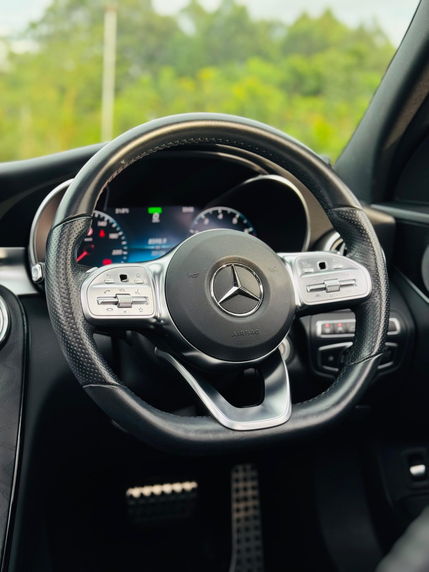 Step inside and you’re welcomed by a premium cabin that reflects true Mercedes-Benz craftsmanship. The AMG Line interior brings in a sporty edge with leather upholstery, contrast stitching, and a flat-bottom multifunction steering wheel. Ambient lighting adds a luxurious mood, while the wide digital display and infotainment system keep everything intuitive and within reach. Comfort is top-tier, with supportive seats and a quiet cabin that makes every drive feel first-class.