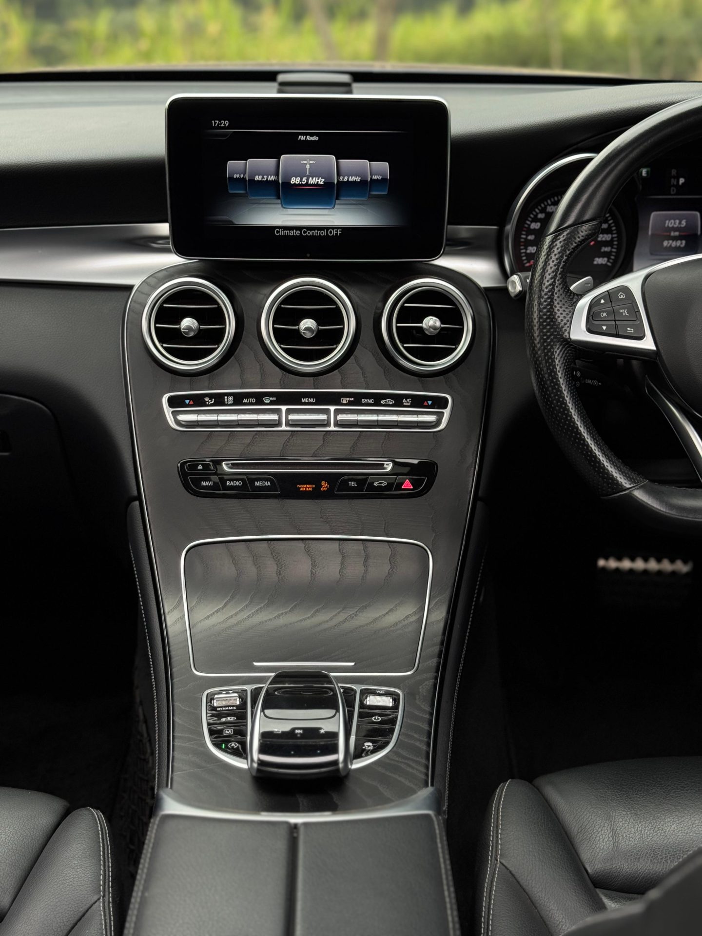 Power comes from a refined 2.0-liter turbocharged engine producing about 211 hp, paired with the smooth 9-speed automatic transmission and 4MATIC all-wheel drive. The result is confident acceleration and balanced efficiency at around 14.5 km/l, giving the GLC250 both performance and practicality.