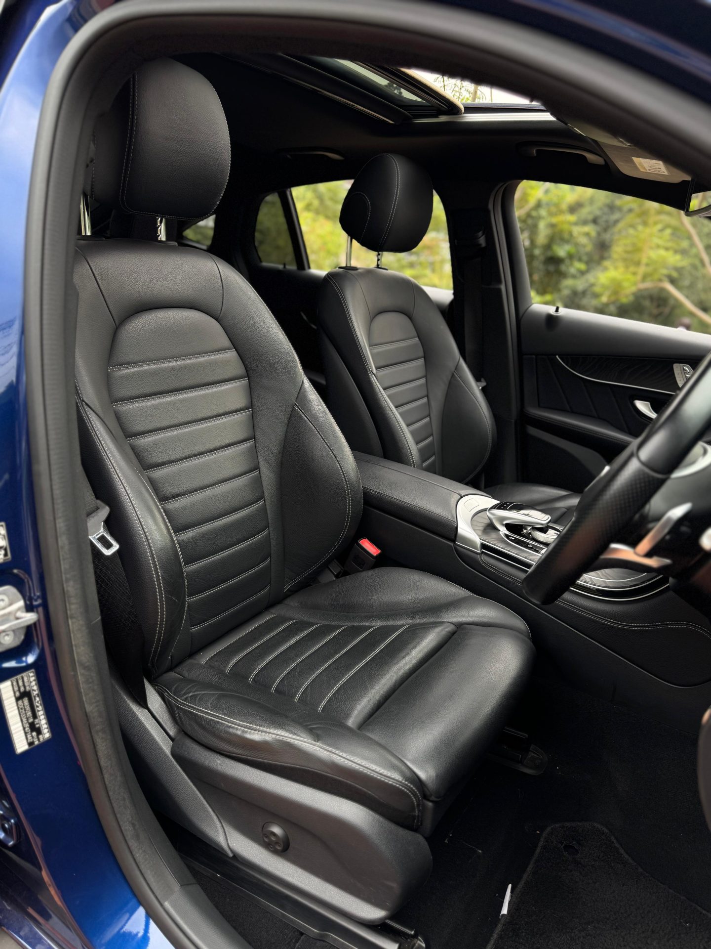 Finished in a striking blue, the Mercedes‑Benz GLC250 Coupe blends SUV strength with coupe-like elegance. Its sloping roofline, muscular rear stance, and signature diamond grille give it a sporty presence that stands out instantly. The sleek LED lighting and sculpted body lines make the coupe silhouette feel dynamic even when parked.
