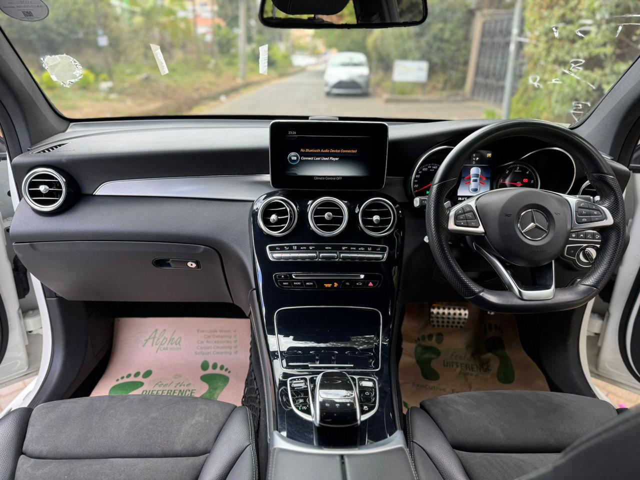 The 2018 Mercedes-Benz GLC 250 in white is a perfect blend of elegance and athletic SUV design. Its crisp white finish highlights the sculpted body lines, bold front grille with the iconic three-pointed star, and sleek LED lighting that gives it a refined yet commanding presence on the road.