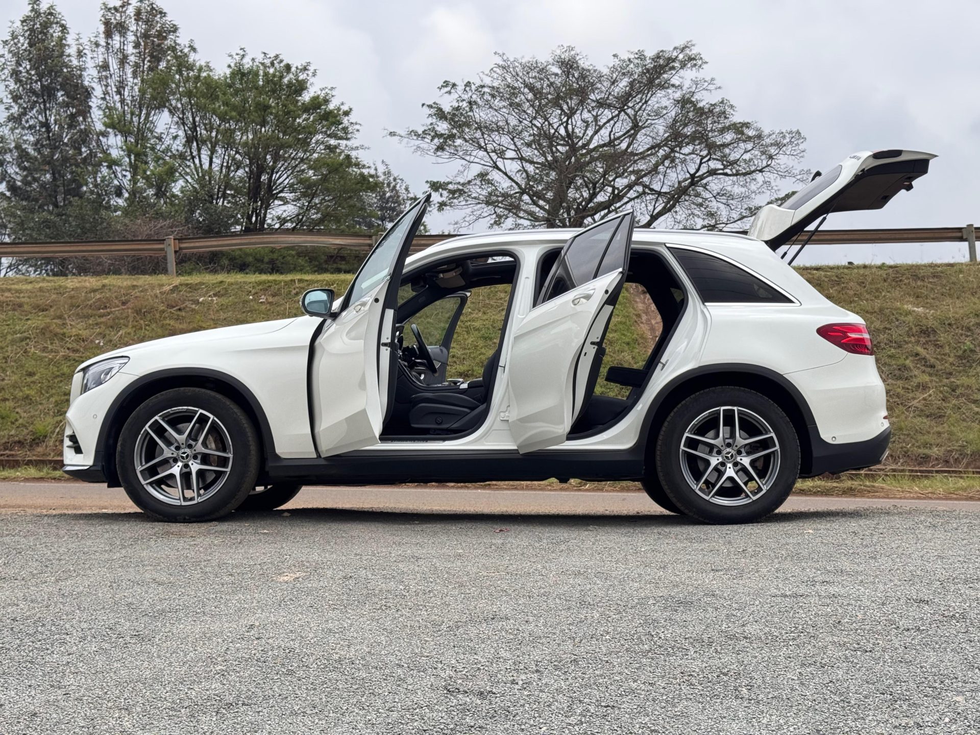 I have with me the 2018 Mercedes-Benz GLC220d, finished in an illuminating pearl white that glows with a quiet intensity. Its stance is graceful, the lines sculpted to flow from the front grille to the rear with seamless continuity. The LED headlamps give it a focused gaze, while the chrome touches and subtle curves bring out that Mercedes elegance that never fades with time. The proportions are balanced, confident, and commanding — an SUV that wears sophistication as effortlessly as it carries power beneath.