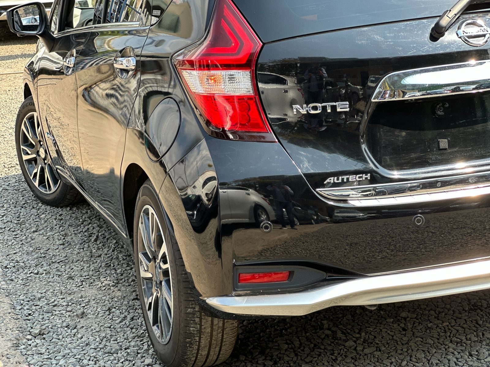The Autech version is a factory-tuned trim that elevates the car's aesthetic and feel. The Autech package typically adds unique bumpers, chrome detailing and custom wheels, giving the Note a sportier, more distinctive look than the standard model. The interior features custom touches, often including unique upholstery and colored accents, providing a subtle upgrade in premium feel. One-Pedal Driving:A highly convenient feature of the e-POWER system that allows the driver to accelerate, decelerate, and stop the car using just the accelerator pedal, making stop-and-go traffic much easier.