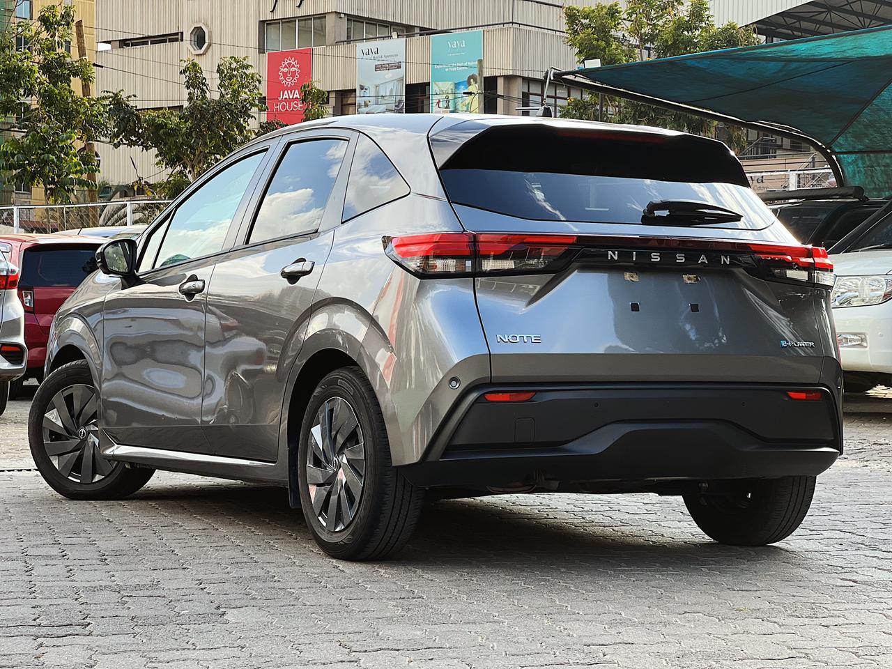 The 2021 Nissan Note E13 in Silver Metallic is one of those compact hatchbacks that perfectly blends urban practicality with futuristic styling and surprisingly advanced technology. It carries Nissan’s modern design language with a clean, aerodynamic silhouette that makes it look refined yet sporty. The flowing body lines, chrome-accented front fascia, and signature LED lighting create a premium road presence, while the neatly sculpted rear section with sleek tail lamps, spoiler detailing, and integrated parking sensors gives it a confident and modern finish.