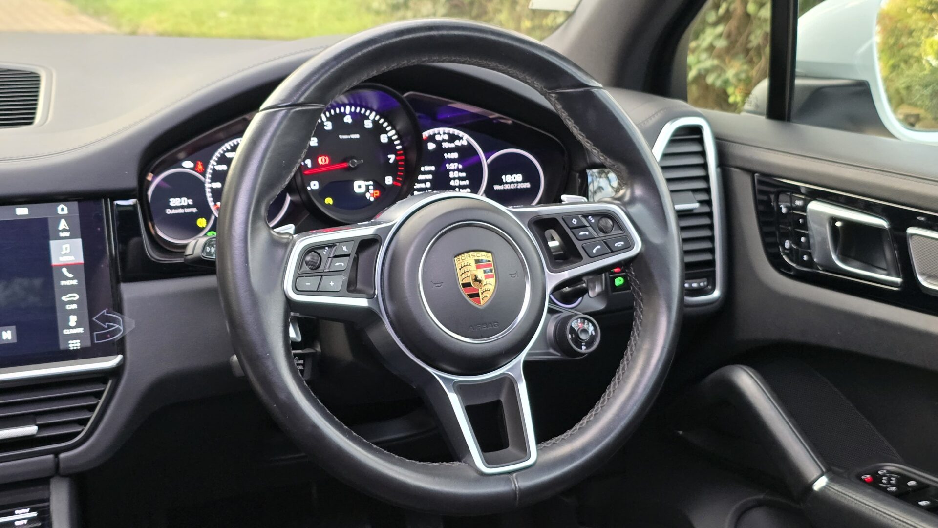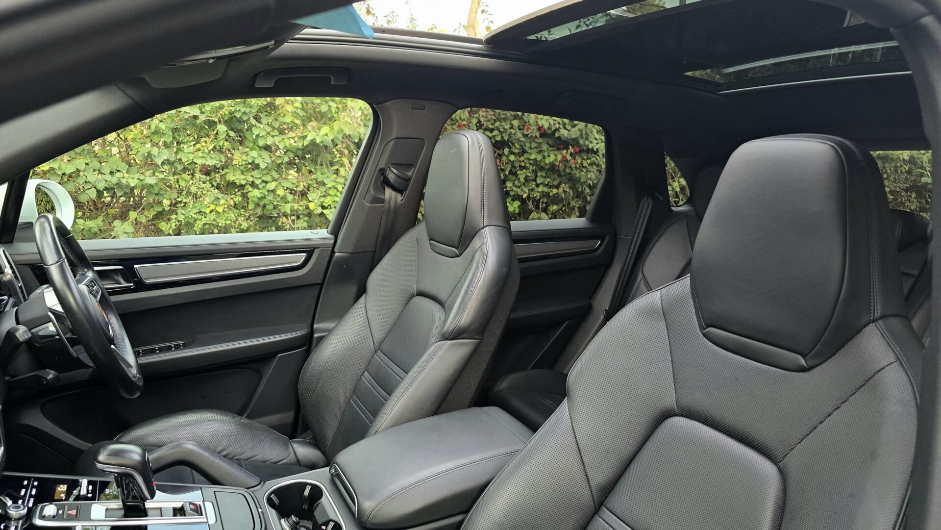 Up top, a full panoramic sunroof opens the sky, flooding the cabin with natural light and adding to the open, premium feel. Tech doesn’t take a backseat either—there’s a crisp infotainment display with navigation, multi-zone climate control, ambient interior lighting, and a full suite of safety features including adaptive cruise control, lane keeping assist, and Porsche Active Suspension Management (PASM). From its sculpted LED headlights to its quad exhausts, the Cayenne isn’t just another luxury SUV—it’s a Porsche, and it damn well feels like it.