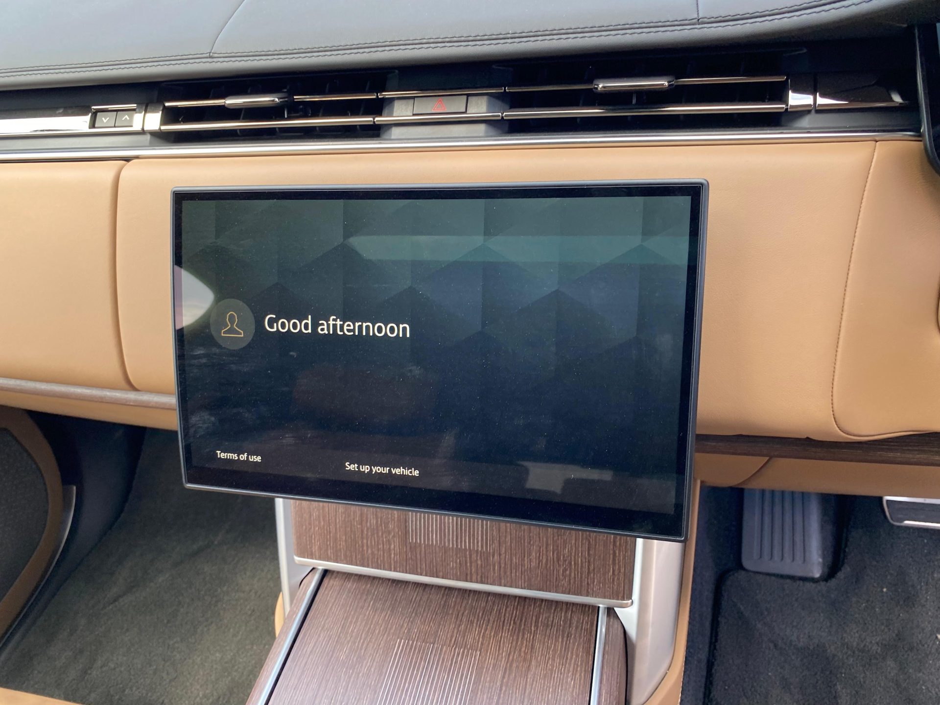 Step inside, and the cabin is nothing short of a sanctuary. The rich tan leather interior, hand-finished with wood veneer accents, sets the tone for true craftsmanship. The seats aren’t just comfortable; they’re indulgent, offering a lounge-like feel while the panoramic view and ambient lighting immerse you in calm. At the center, the floating Pivi Pro display paired with Meridian surround sound keeps technology subtle yet powerful. Every inch has been designed to remind you this is no ordinary SUV — it’s a Range Rover Autobiography.