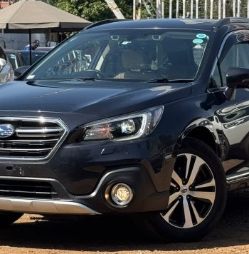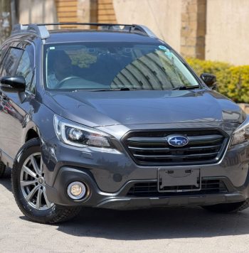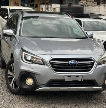 The vehicle in the image is a 2018 Subaru Outback, a midsize crossover SUV known for its rugged capability, practicality, and reliability. This particular model features automatic transmission, runs on petrol, and is equipped with All-Wheel Drive (AWD)—a hallmark of Subaru engineering that enhances traction and stability, especially in adverse weather and off-road conditions. The 2018 Outback showcases a modern and robust exterior design with a bold hexagonal front grille, sleek LED headlights with integrated daytime running lights, and prominent fog lamps embedded in a muscular front bumper. The white body color adds a clean, upscale appearance, complemented by contrasting black cladding around the wheel arches and lower body, enhancing its rugged appeal.
