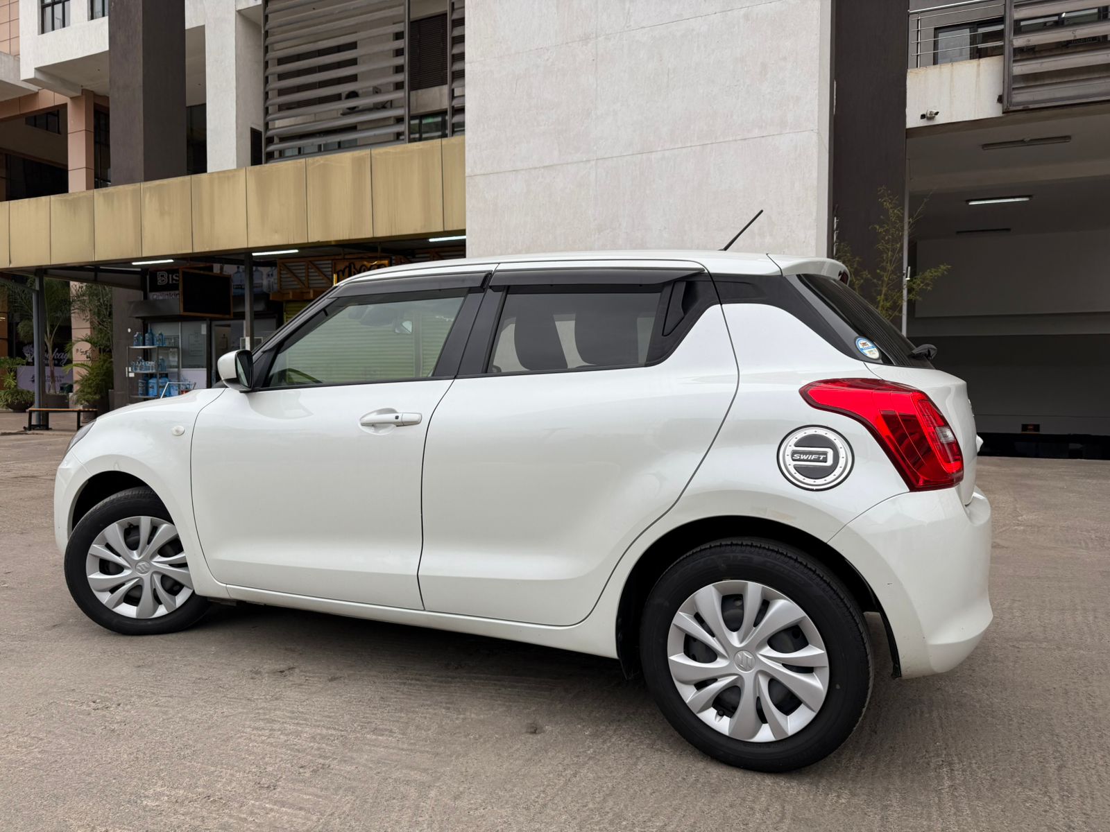 A compact hatchback that blends sporty styling with excellent fuel efficiency. Finished in a clean white colour, it has a youthful, modern design with a distinctive front grille, sharp headlights, and a sleek profile. Under the hood, it features a 1.2-litre petrol engine that delivers a good balance of performance and economy, making it ideal for city commuting and occasional highway drives. The interior is surprisingly spacious for its class, offering comfortable seating for five passengers, practical storage spaces, and user-friendly controls. Standard features often include keyless entry, a multifunction steering wheel, air conditioning, and a decent audio system. The Swift is known for its nimble handling, light steering, and reliable running costs, making it a popular choice for drivers seeking an affordable, stylish, and dependable small car.