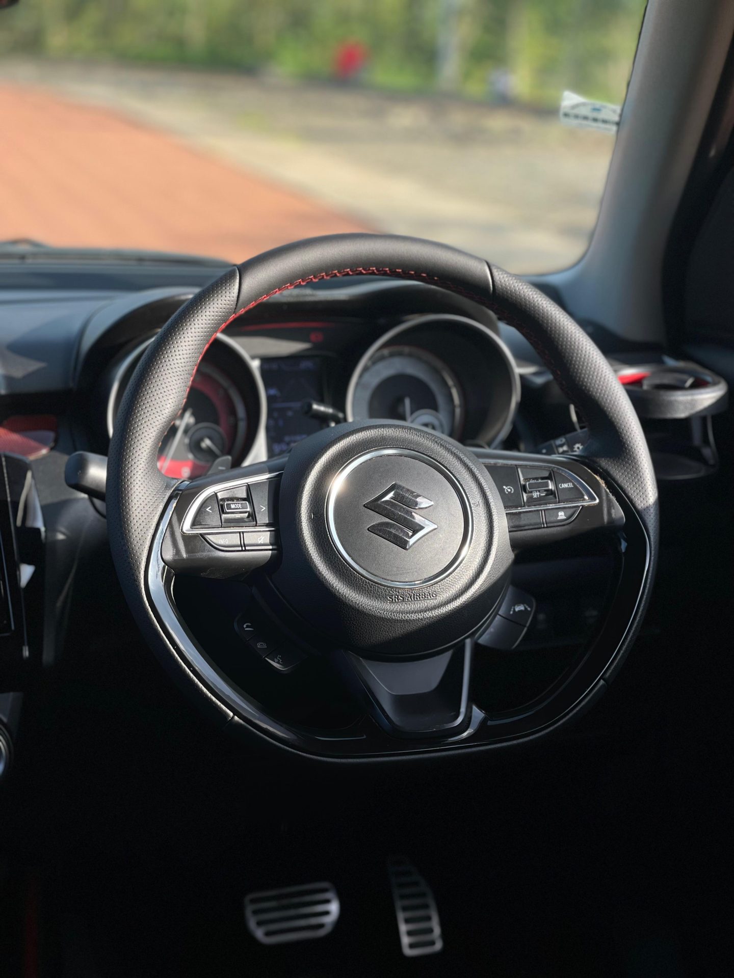 This Swift Sport is distinguished by how naturally it blends its sporty identity with everyday usability. The metallic red coating gives it an unmistakable signature, the sporty wheels enhance its personality, and the camera system adds modern convenience that elevates its daily comfort. It becomes a car that is fun to own, enjoyable to drive, and appealing to look at. A hatchback that moves with confidence and character, leaving a strong impression every time it shows up.