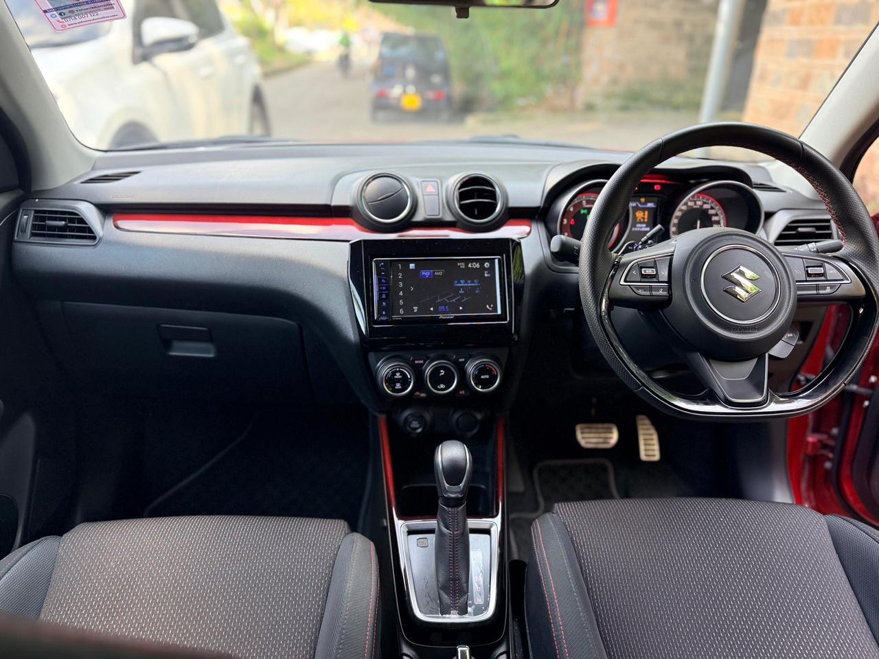 On the outside, this Swift Sport stands out with its bold rear spoiler, stylish sport alloy rims, and signature dual sport exhausts that not only enhance performance but also give it that unmistakable sporty growl. LED daytime running lights (DRLs), fog lights, and side mirror indicators elevate both visibility and aesthetics, ensuring you look sharp day or night.