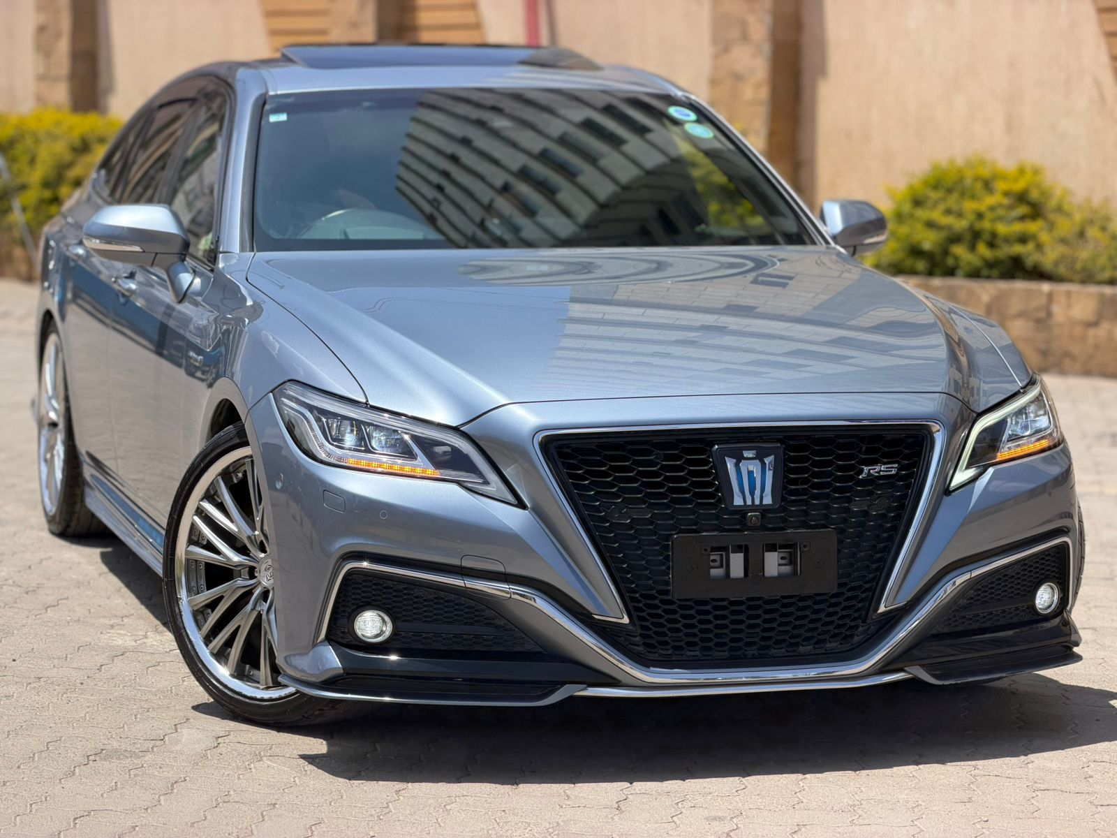 This 2019 Toyota Crown RS finished in Sonic Silver is a masterclass in blending executive prestige with athletic character. From the first glance, the paintwork reflects light with a crisp metallic brilliance, accentuating the sedan’s long, sculpted body lines and assertive front fascia. The sporty alloy wheels complete its performance-inspired stance, giving the Crown RS a planted, confident look whether it’s cruising through Nairobi’s urban avenues or gliding effortlessly along the highway. It is a vehicle that doesn’t shout for attention — it commands it quietly, through presence alone.