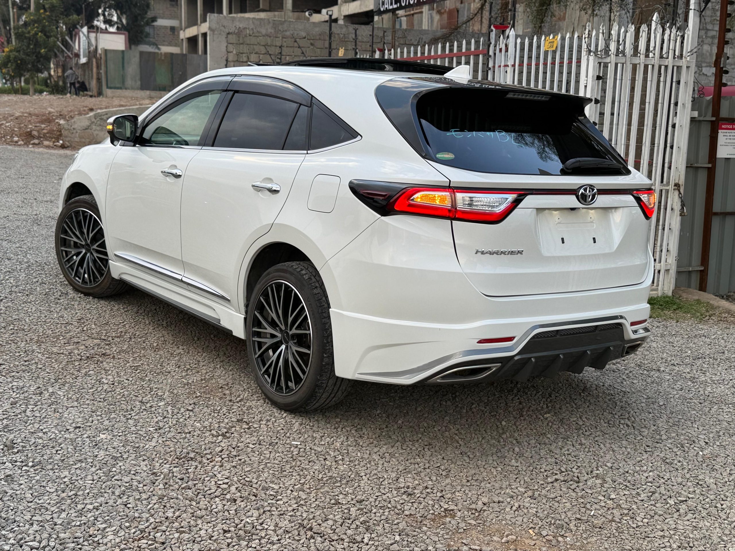 The 2018 Toyota Harrier 2000cc in pearl white is a bold and refined mid-size SUV that blends aggressive styling with premium comfort. This particular unit stands out thanks to its custom unique bumper body kit that sharpens its presence on the road, paired with massive 20" alloy rims that give it a muscular, upmarket stance. The panoramic sunroof opens up the cabin to light and air, enhancing the luxurious experience inside. With only 45,000 km on the clock, it’s a low-mileage unit that promises longevity and solid reliability.