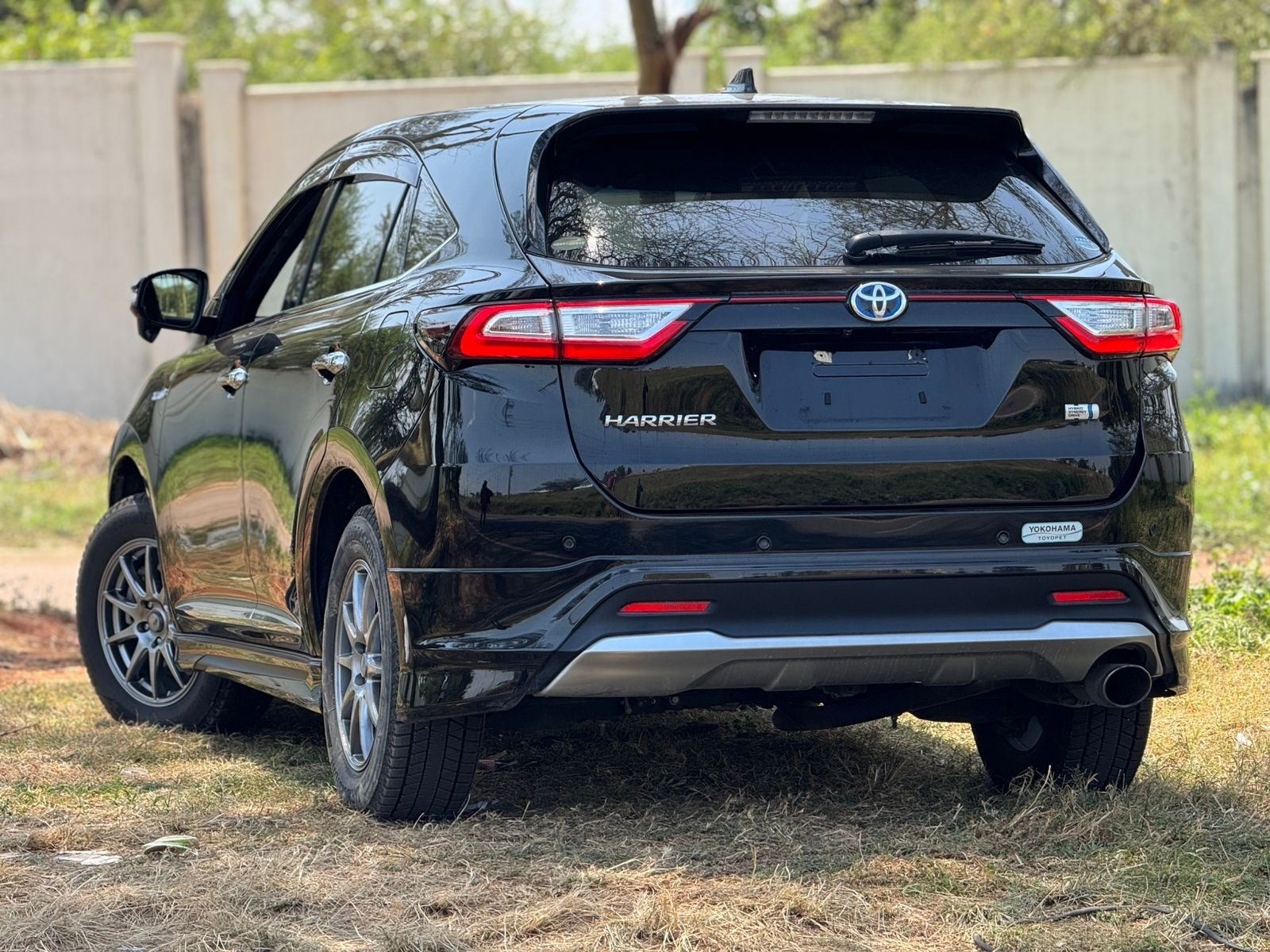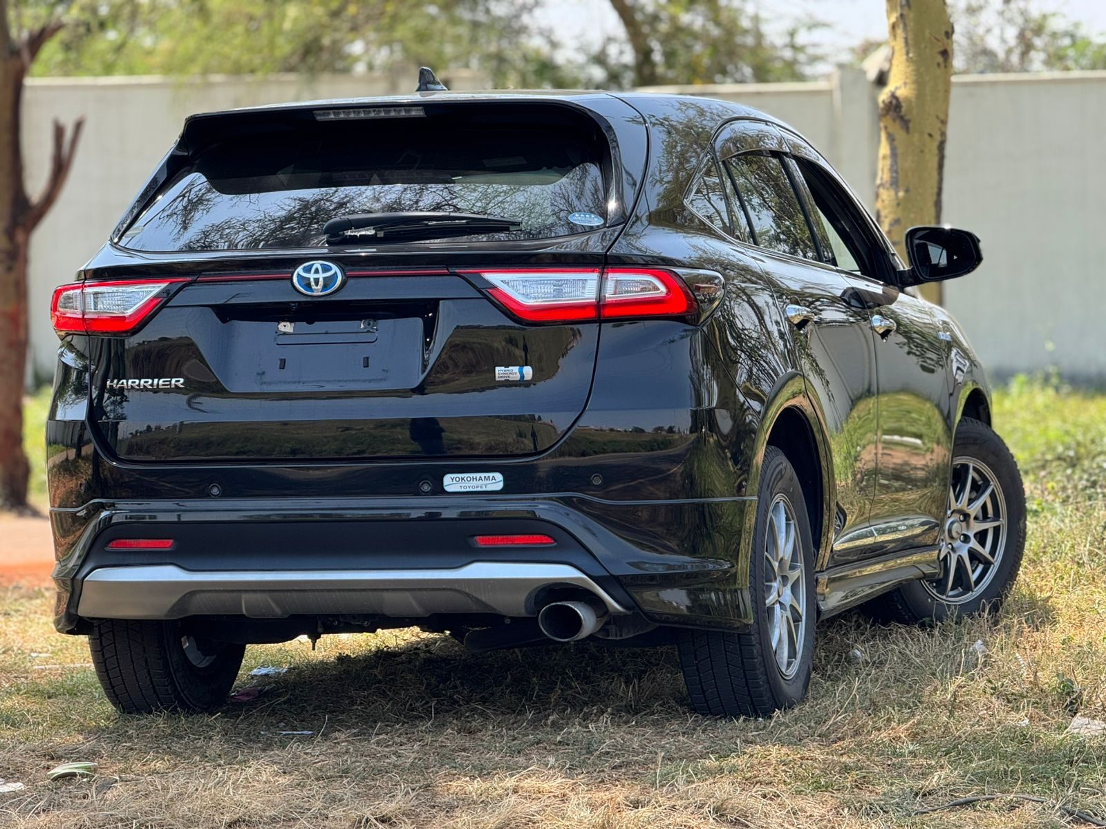 The 2018 Toyota Harrier 2.5L Hybrid in black is a well-balanced mid-size SUV that combines sleek styling, hybrid efficiency, and advanced features. Equipped with a 2.5-liter Atkinson-cycle engine and dual electric motors in an E-Four (AWD) system, it delivers a total output of around 197 horsepower and excellent fuel economy—up to 20 km/L. The black exterior enhances its premium appeal with sharp LED headlights, a bold grille, and aerodynamic lines. Inside, the Harrier offers a quiet, comfortable cabin with high-quality materials, modern infotainment, and ample space for passengers and cargo. Safety is a strong point, thanks to Toyota Safety Sense features like pre-collision assist, adaptive cruise control, and lane departure warning. Overall, the Harrier stands out as a practical yet upscale SUV ideal for urban and long-distance driving.