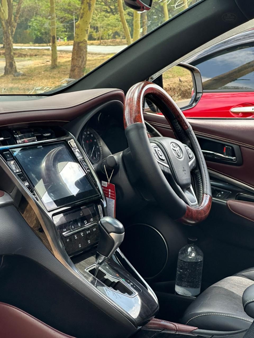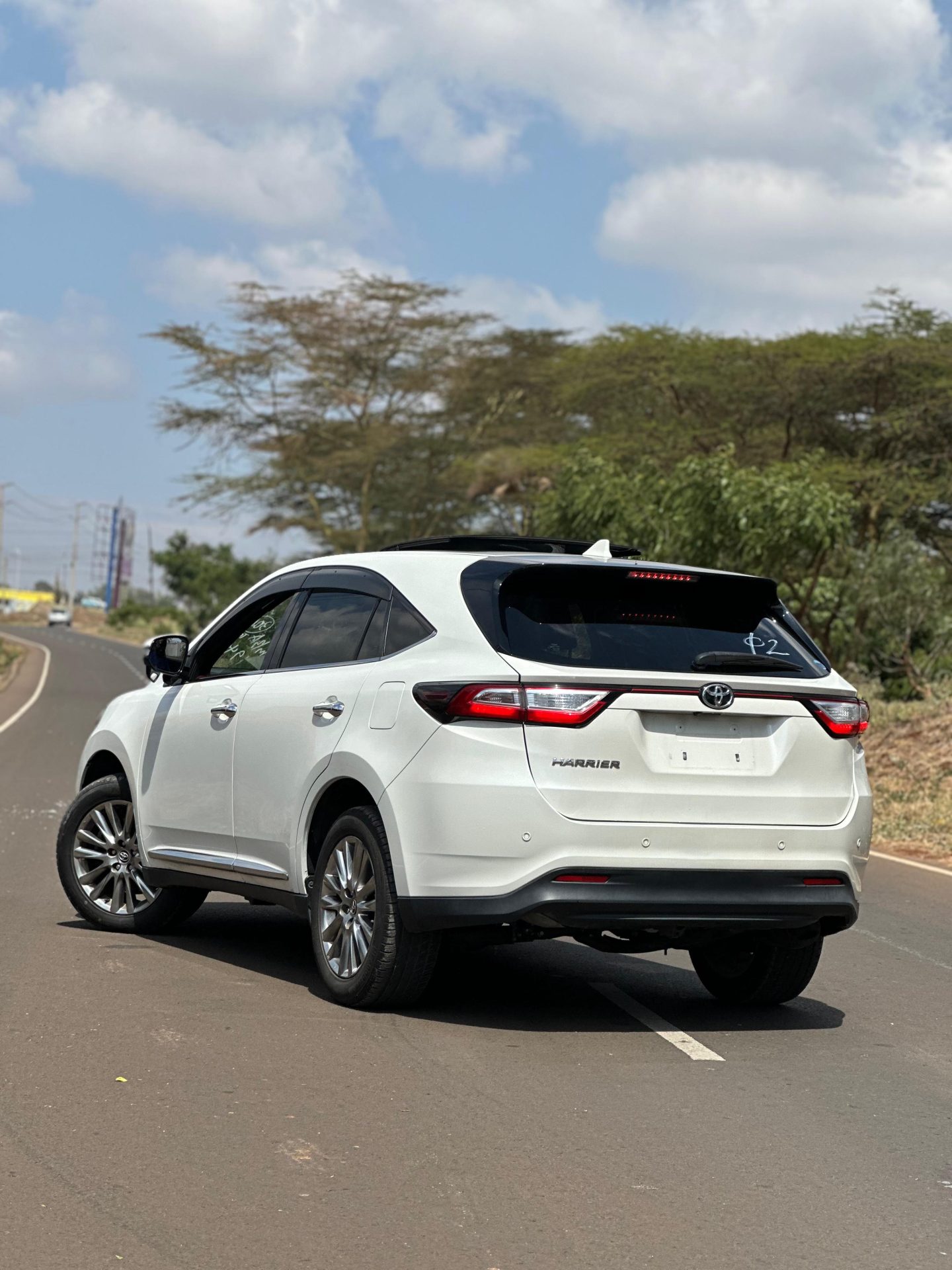 This 2018 Toyota Harrier carries itself with the kind of quiet prestige that the model has built its name on. The pearl white coat gives it a clean, glassy sheen that bends light gently across the bodywork, making every curve and contour visible even from a distance. It is the sort of colour that magnifies the Harrier’s long, elegant bonnet, its narrow LED eyes, and the confident forward stance that defines this generation. Even parked, the car looks composed, almost floating above the pavement with a refined calmness that mirrors the Lexus-inspired pedigree beneath its skin.