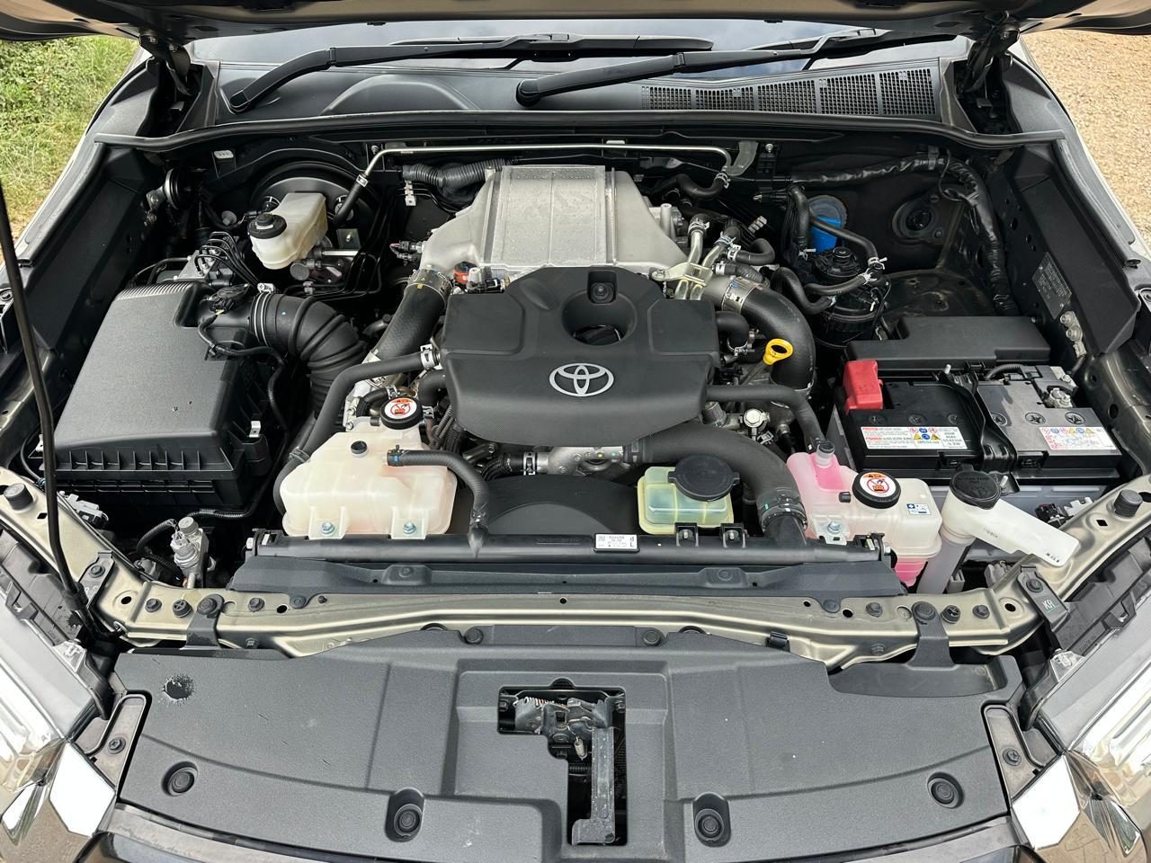 When it shifts from the tarmac to the trail, the Hilux transforms from refined to relentless. The selectable H2, H4, and L4 modes, paired with downhill assist, turn steep paths and rough ground into manageable terrain. Its 2.4-liter diesel engine delivers a steady surge of torque, confident in both pull and endurance. Riding on 18-inch TRD alloy wheels with 265/60R18 all-terrain tyres, the stance is commanding — the kind that grips gravel as firmly as it rolls over smooth pavement.