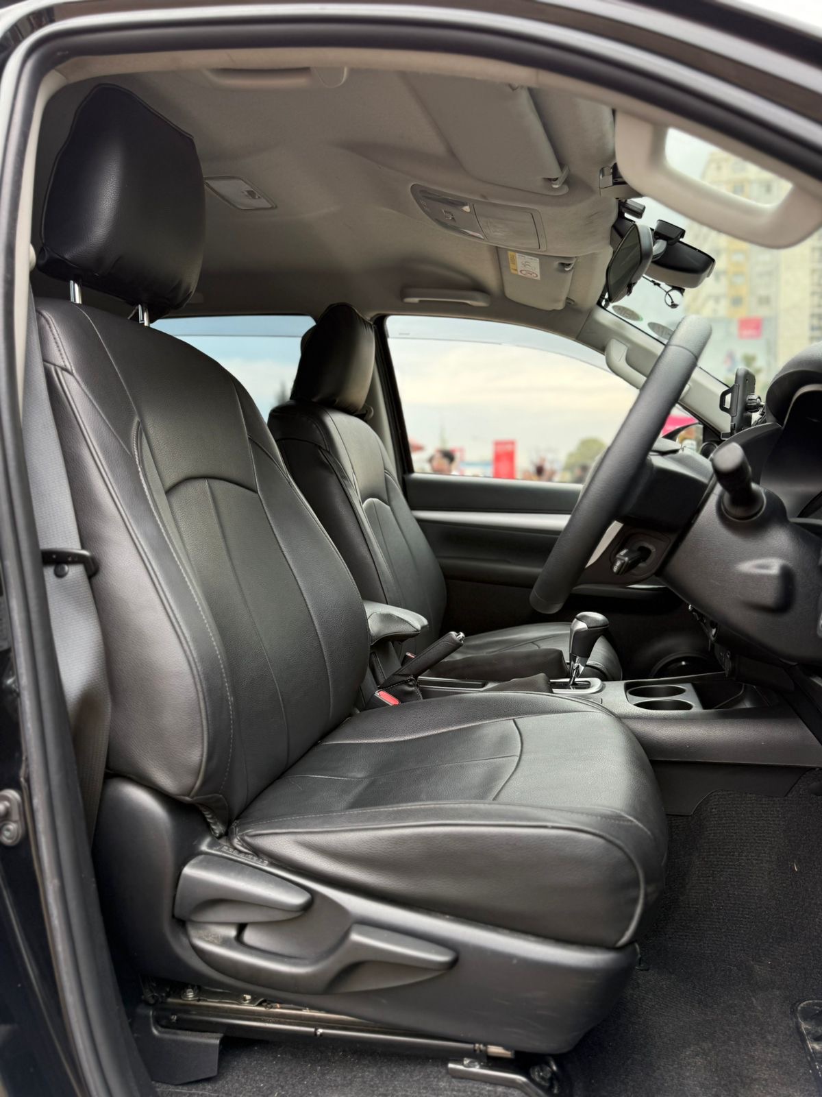 Step into the cabin and you’re greeted by a premium black leather interior that blends durability with comfort. The leather seats are designed for long drives and tough environments, offering both style and practicality. The spacious double cabin provides ample legroom for passengers, making it ideal for both family use and business operations.