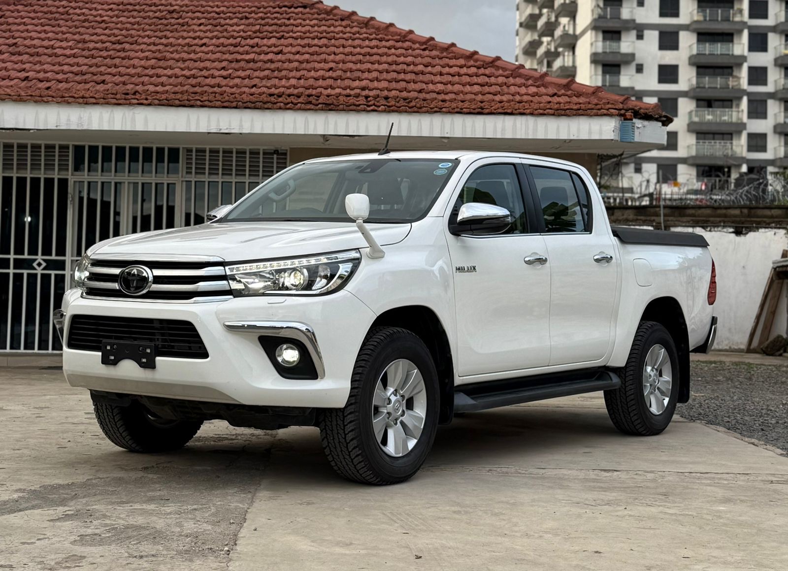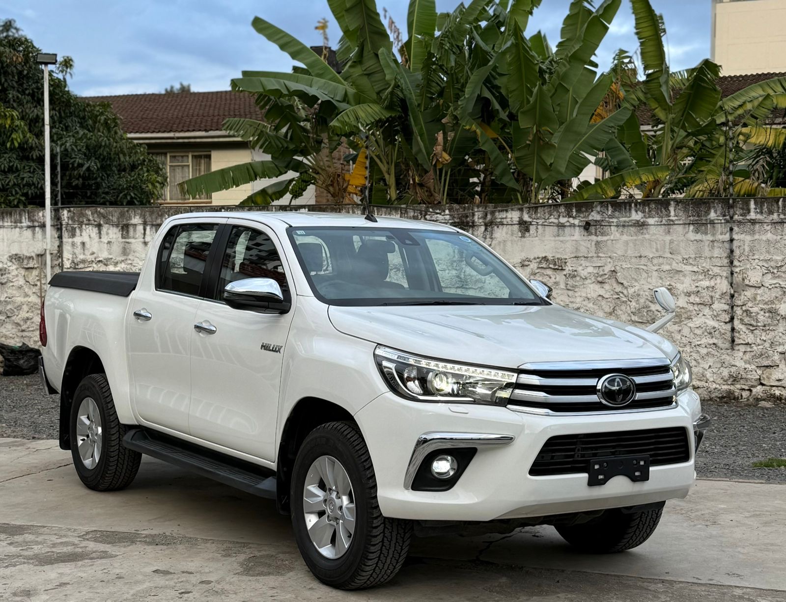 The Toyota Hilux 2.4L GD6 Double Cab is a tough, reliable pickup built to handle both rugged work environments and daily driving with ease. Finished in a sleek white exterior, this model stands out with its bold chrome-accented front grille, LED daytime running lights, and a muscular body design that reflects its off-road readiness.