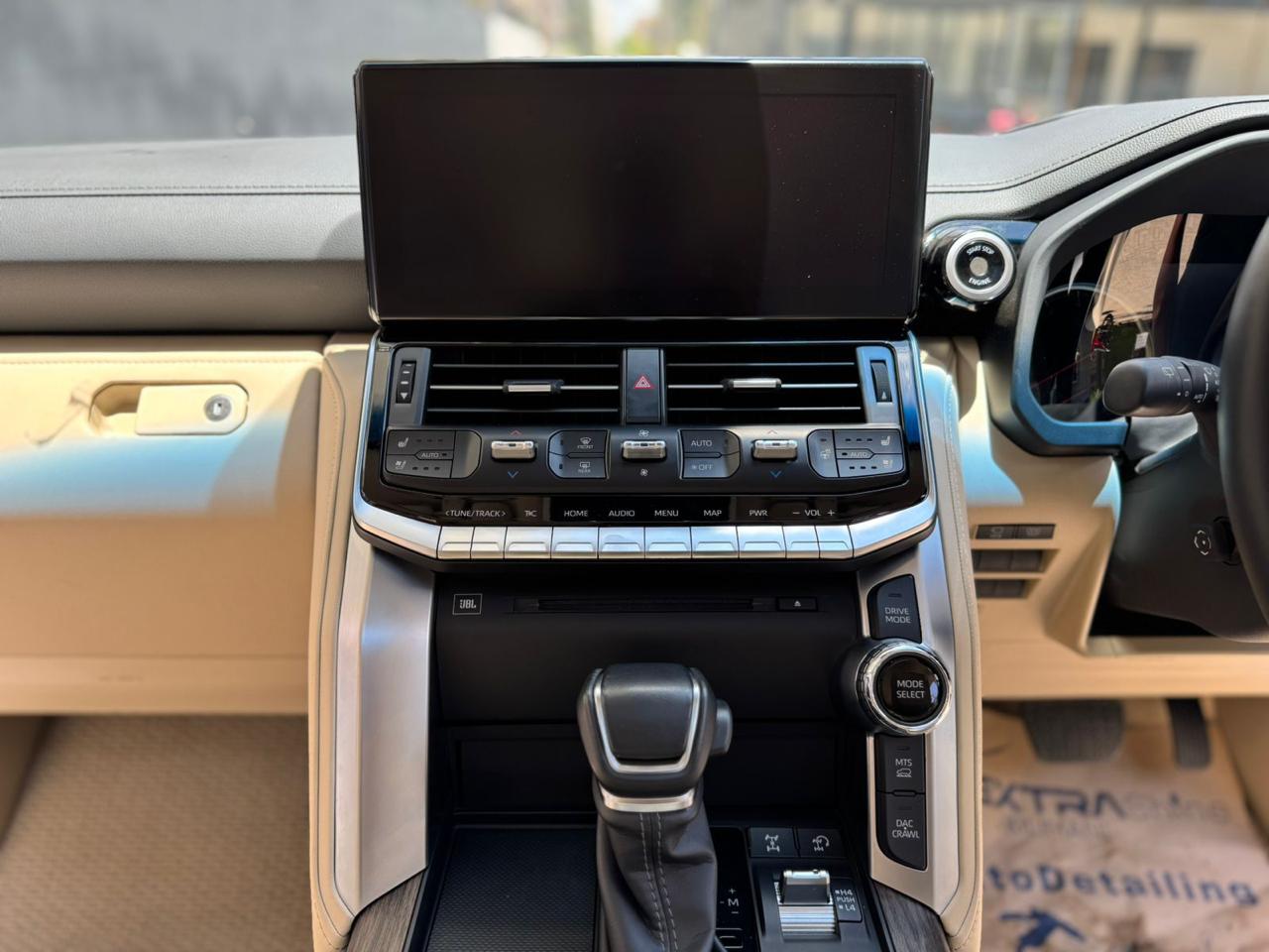 makes an unforgettable first impression. Its bold, muscular stance is elevated by the pristine White Pearl finish that highlights every sculpted line and rugged contour. With a commanding front grille, sleek LED lighting, and robust 122‑inch alloy wheels, this Land Cruiser blends premium design with unmistakable presence on and off the road.