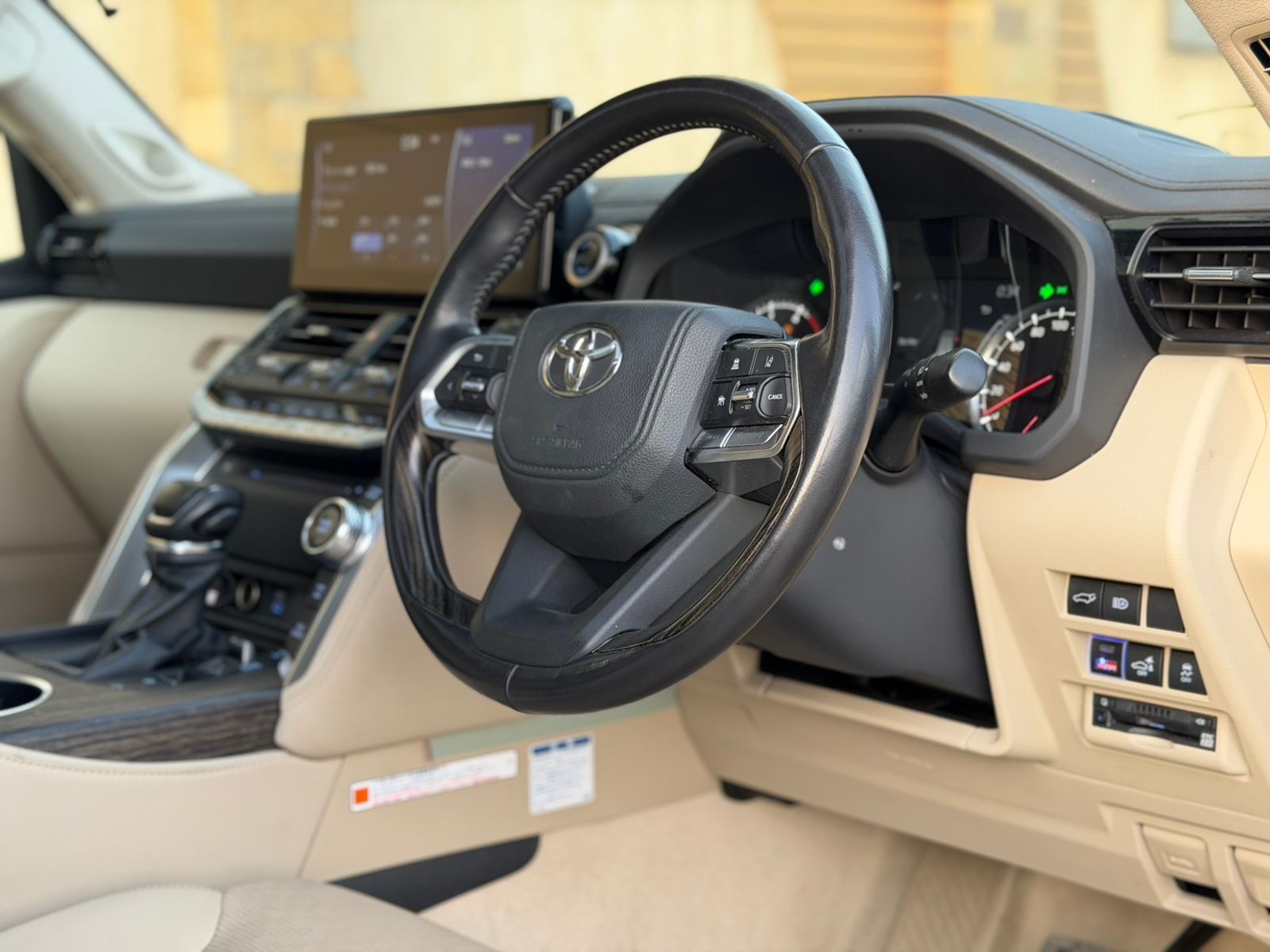 The exterior design blends elegance with purpose, enhanced by practical luxury features that simplify everyday use. The power tailgate opens effortlessly, offering easy access to the spacious luggage area, while the 360-degree camera system and parking sensors provide complete situational awareness around the vehicle. These technologies make maneuvering such a large SUV surprisingly easy, even in tight urban environments, reinforcing the LC300’s reputation as both powerful and intelligent.