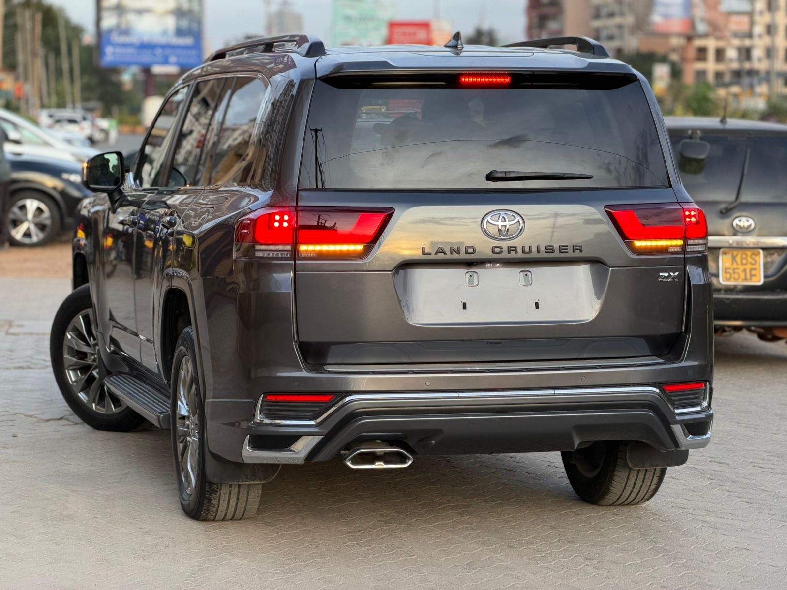 Power meets prestige in this Toyota Land Cruiser LC300, a machine engineered to dominate both city streets and untamed terrain with equal authority. Finished in a sophisticated dark metallic grey exterior, this 2023 model represents the new generation of Land Cruiser design bold, muscular, and unmistakably premium. Its sculpted rear profile, wide stance, and modern LED lighting signature give it a powerful road presence that speaks of confidence and refinement before the engine is even started.