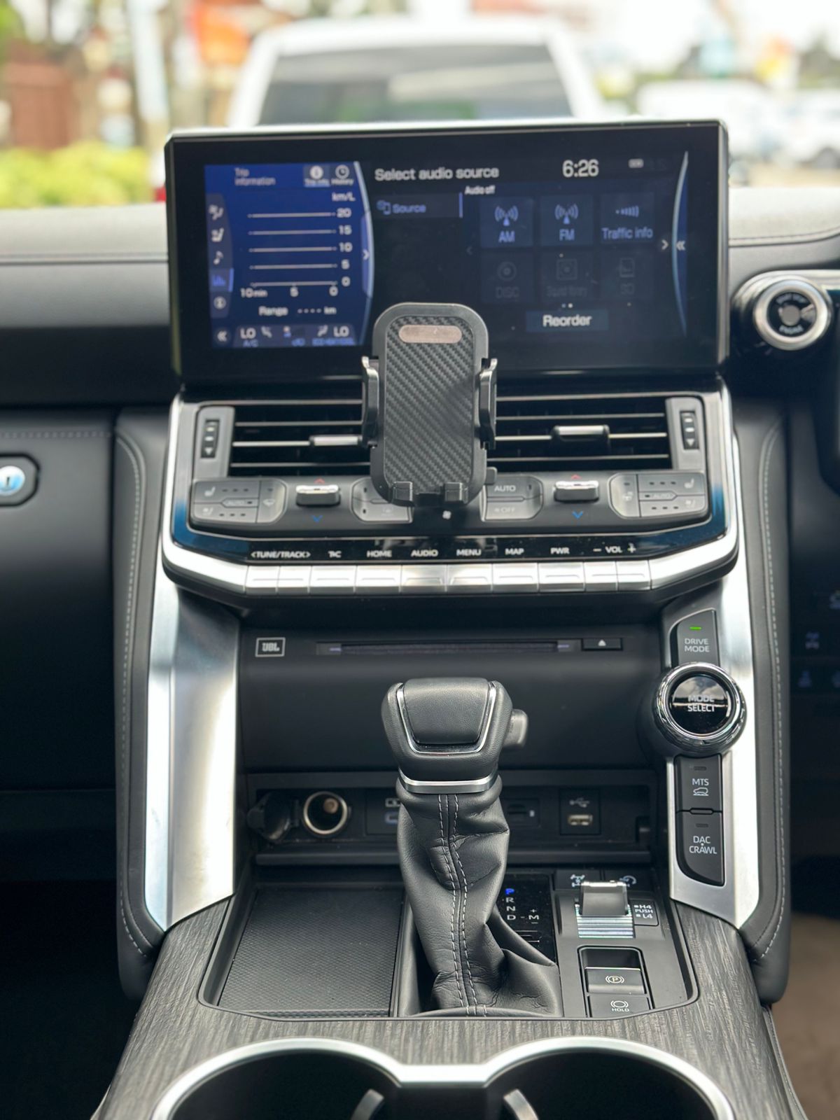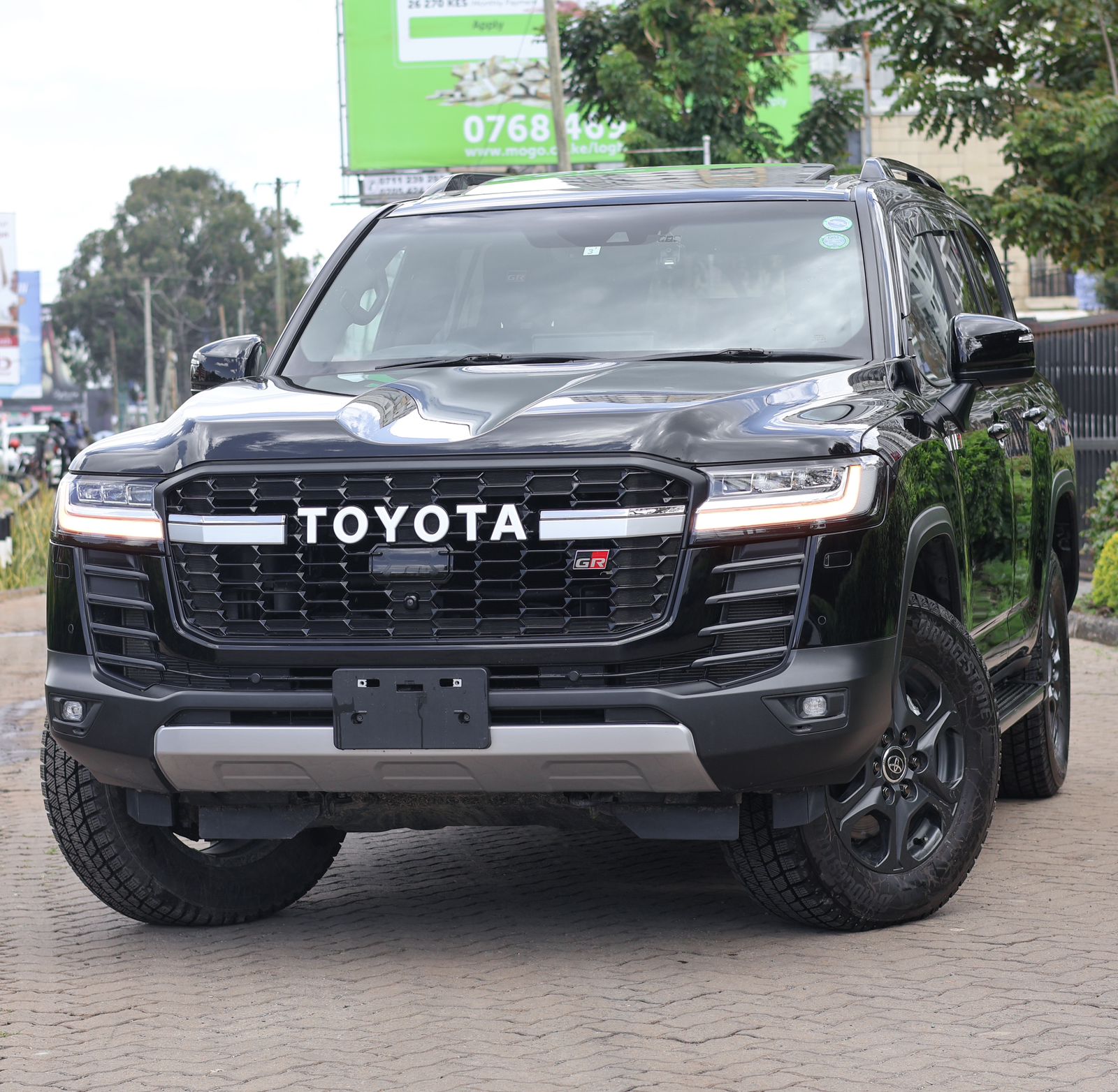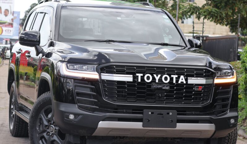 The 2023 Toyota Land Cruiser LC300 GR-Sport in black is a rugged yet refined SUV that blends luxury with serious off-road capability. Dressed in a bold black finish with blacked-out trims, matte 18-inch wheels, and GR-Sport badging, it stands out with a commanding presence. Under the hood, it packs a powerful 3.5L twin-turbo V6 petrol engine delivering around 415 horsepower, mated to a smooth 10-speed automatic transmission and full-time 4WD. Built for performance, it features advanced off-road tech like front and rear electronic differential locks, E-KDSS suspension, Multi-Terrain Select, and a 360° Multi-Terrain Monitor. Inside, it offers a premium cabin with leather seats, a large infotainment system, head-up display, and a powered tailgate. The LC300 GR-Sport is the ultimate package for those who demand both comfort and capability.