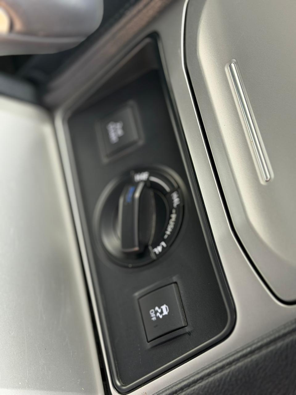 Above, the factory sunroof introduces light into the cabin, softening the otherwise strong and executive feel. The beige roof lining adds warmth and openness, creating a balanced contrast to the dark exterior and interior materials. From the roof drops a rear entertainment screen, thoughtfully integrated for rear passengers, turning long journeys into relaxed, comfortable experiences without compromising the Prado’s formal tone.