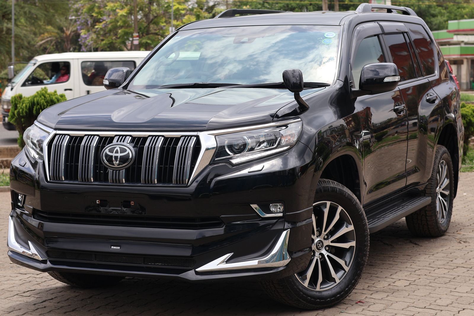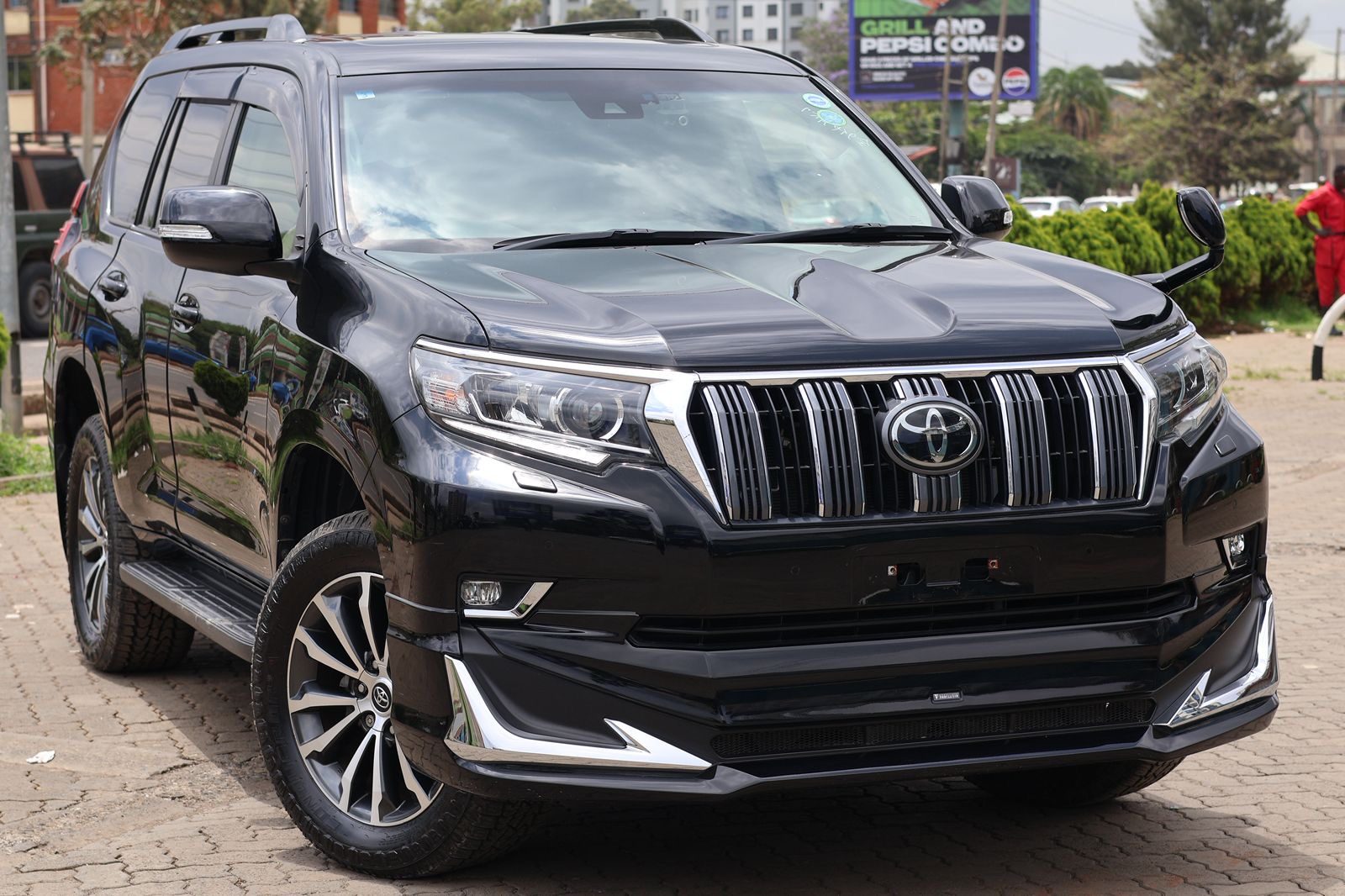 Its commanding presence is accentuated by a sleek, aerodynamic exterior finished in deep black, complemented by bold chrome accents and stylish alloy wheels that exude confidence from every angle. The Prado TX-L’s design blends timeless sophistication with a muscular stance, ensuring it looks just as impressive on the highway as it does off-road.