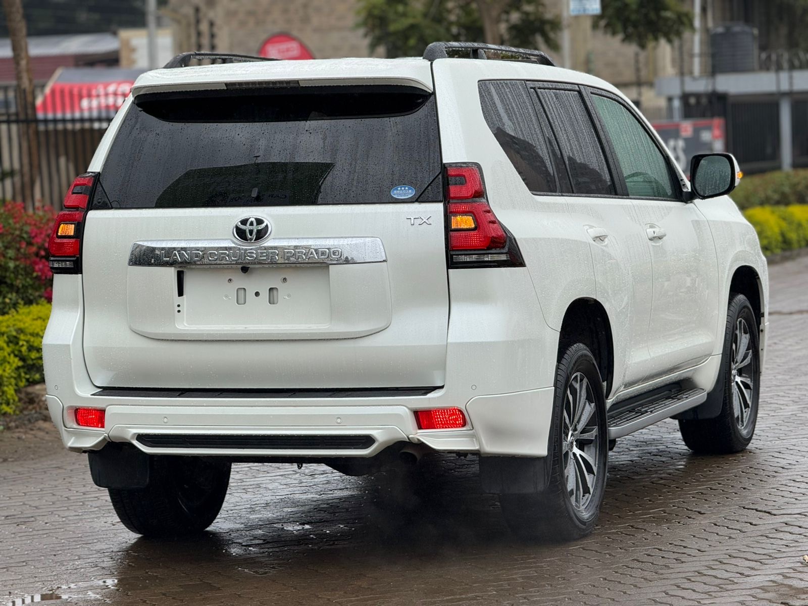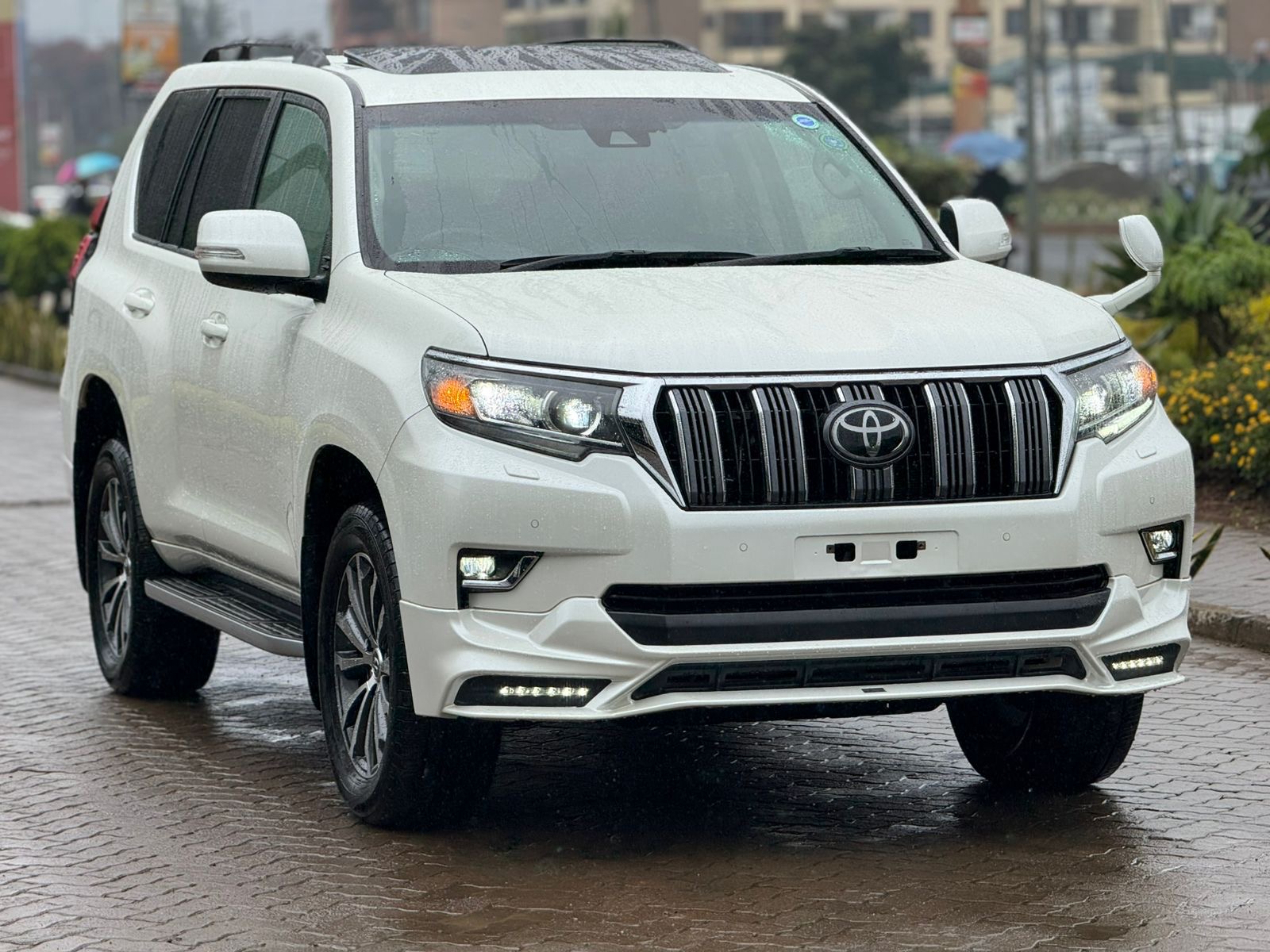 The Toyota Land Cruiser Prado is a popular mid-size luxury SUV known for its strong off-road capability, dependable performance, and upscale features. It has a bold, commanding look with a distinctive large chrome grille, modern LED headlights, and a sturdy, high-riding body that’s ready for both urban streets and rugged terrains. Its generous ground clearance, wide wheel arches, and roof rails emphasize its adventure-ready design.