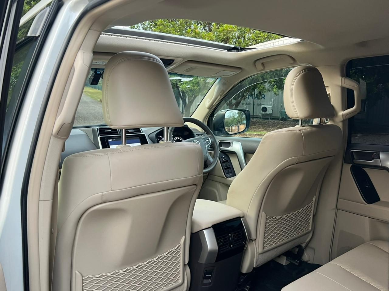 Inside, the Prado TXL reflects thoughtful design and attention to detail. Beige leather seats with heating and cooling functions provide individualized comfort, while power folding rear seats allow passengers to adapt the cabin for cargo or extra seating with minimal effort. The cabin’s layout emphasizes both utility and luxury, offering space, convenience, and an atmosphere of calm that makes even long journeys effortless.