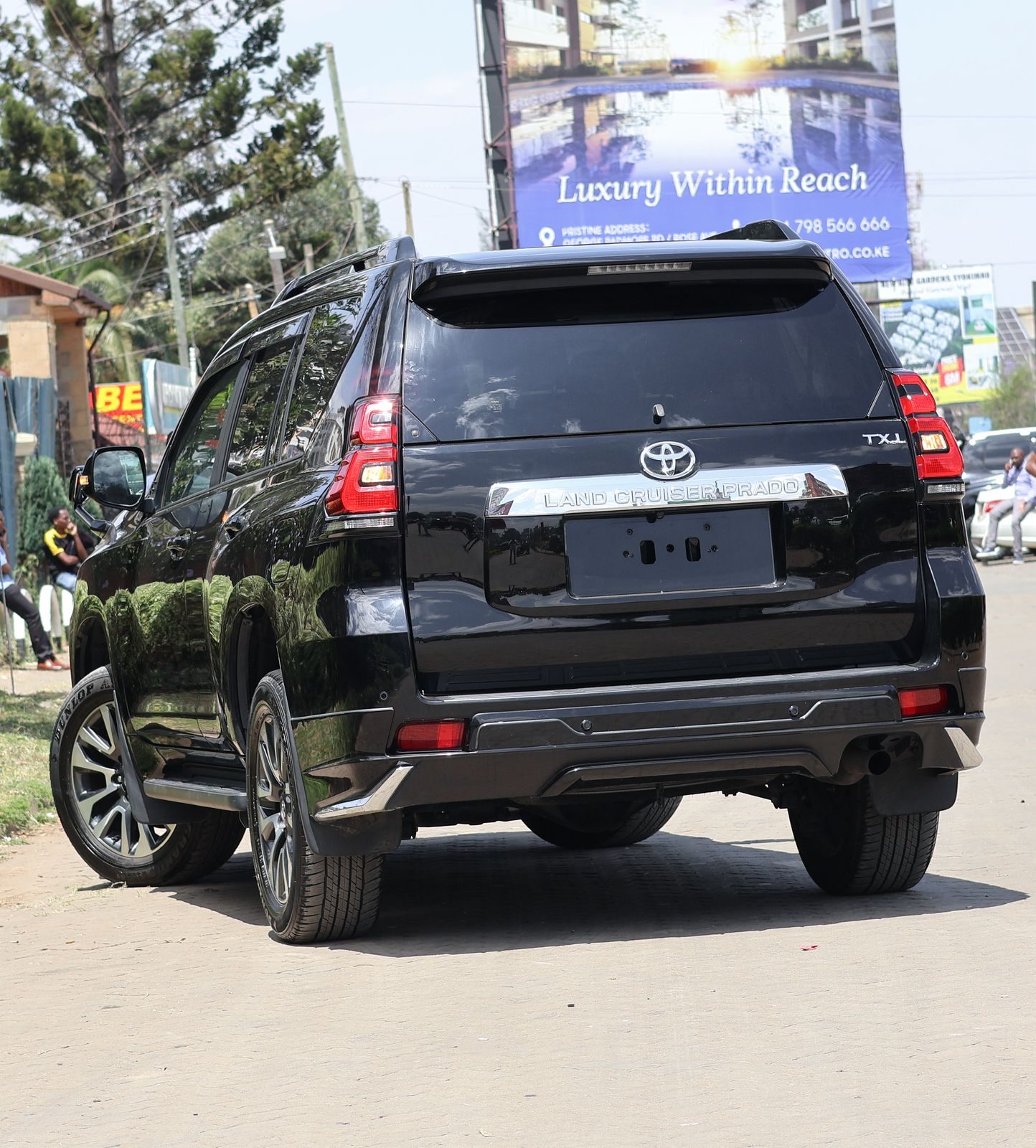 Inside, the Prado TXL offers an executive ambience wrapped in rich black leather. Precision stitching and subtle metallic accents lend the cabin a refined yet modern feel, while the wide sunroof bathes the interior in natural light, making it both bright and inviting. The spacious seating and thoughtfully arranged controls create an environment of quiet luxury—comfortable enough for long-distance travel yet polished enough for an evening arrival at a high-end venue.