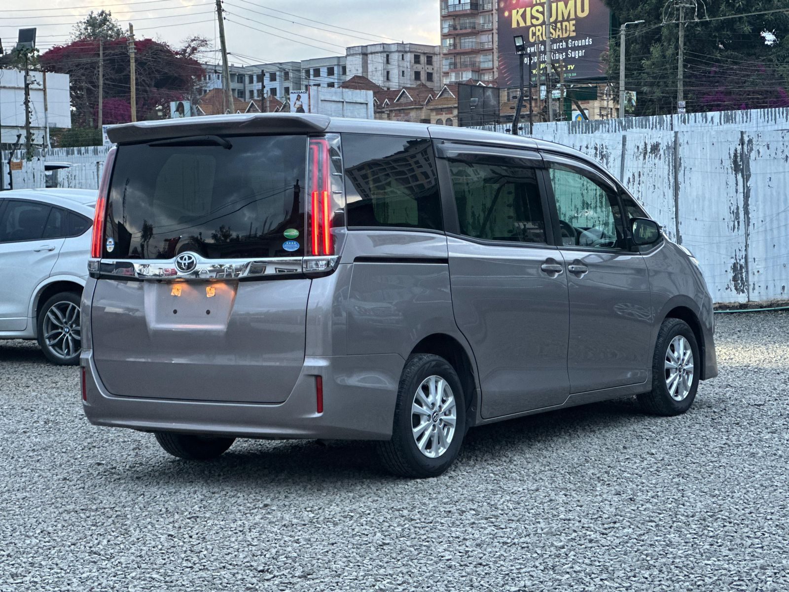 The 2018 Toyota Noah presents itself as a calm and confident family mover, shaped with the refined touch that Toyota gives its MPVs. Its tall, box-like profile is more than design—it’s purpose-built to maximize interior space while keeping a sleek road presence. The bronze metallic color brings out a quiet elegance, and the wide grille up front gives it a sense of strength without shouting for attention. Every line feels measured, designed to balance comfort, utility, and style in equal measure.