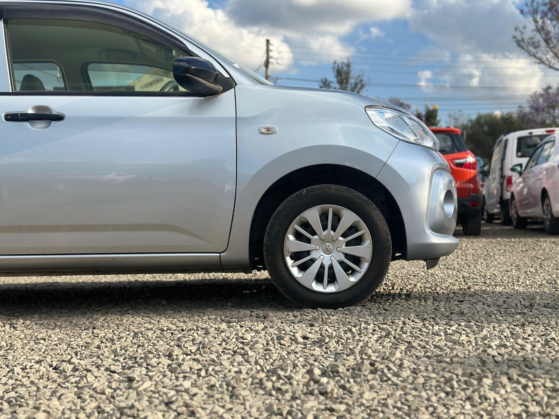 Meet the 2018 Toyota Passo 1000cc, the perfect combination of practicality, style, and efficiency. Dressed in a sleek silver-grey metallic exterior, this compact hatchback is designed for the modern driver who values both elegance and convenience. Its clean, rounded design gives it a friendly yet sophisticated look, while its aerodynamic curves make it effortlessly stylish on the road.