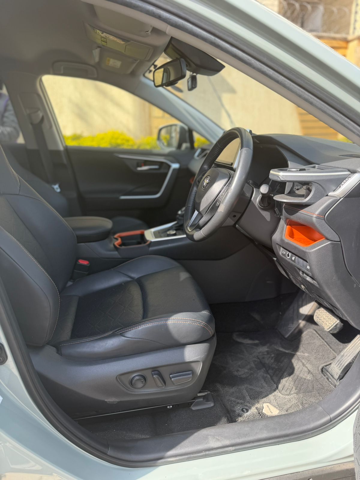 Inside, the cabin blends durability with premium refinement. Leathered seating finished in high-quality materials creates a space that feels upscale yet built to last. Heated and cooled front seats ensure climate comfort across seasons, reinforcing the RAV4’s adaptability. The orange accent detailing across the dashboard introduces a bold, energetic contrast — subtle, but distinctly Adventure. It adds personality without overwhelming the professional layout.