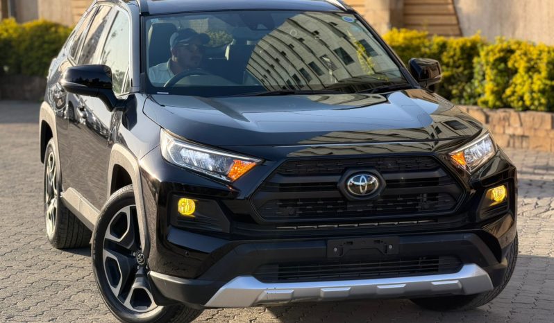 The 2019 Toyota RAV4 Adventure grade stands apart as the most purpose-driven expression of the RAV4 lineup. Finished in a deep black metallic exterior, it projects a bold, confident presence that feels deliberate and rugged. The sporty wheels reinforce its aggressive stance, giving it a grounded, capable look that suggests readiness rather than decoration.
